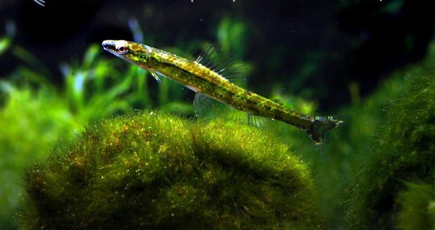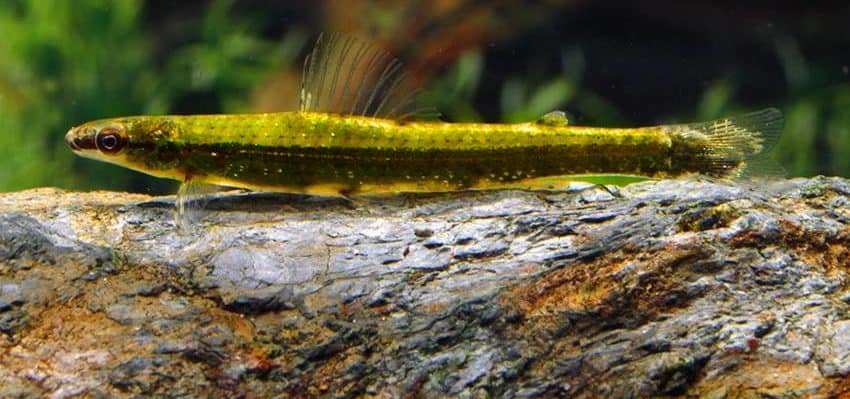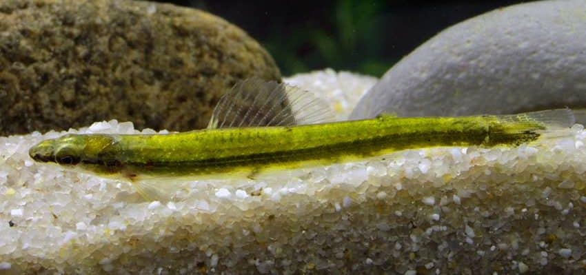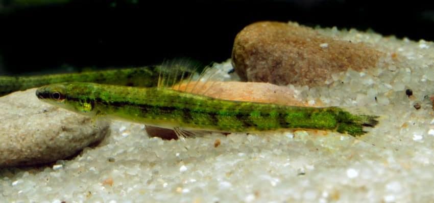 Es gibt wohl keinen anderen Süßwasserfisch, der ein derartiges Giftgrün als Körperfärbung aufweisen kann, wie der etwa 4-5 cm lange Bodensalmler Ammocryptocharax elegans aus Brasilien. Allerdings verfügen die Tiere über ein extremes Farbwechselvermögen und wenn sie Gefahr wittern, sind sie blitzschnell Tarnbraun. Man sollte die Tierchen in bepflanzten Aquarien pflegen, denn nur, wenn sie auf Pflanzen sitzen können, bleiben sie dauerhaft grün – das hat man in Feldstudien herausgefunden.