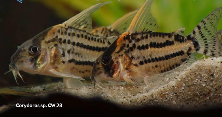 Nun hat Aquarium-Glaser erstmals noch einen Super-Schwartzi erhalten, ebenfalls aus dem Einzug des Rio Purus, genauer gesagt aus dem Rio Mucuim. Die herrlichen, sehr großen (ca. 5,3 cm Standardlänge und 6,5 cm Totallänge) Tiere haben wie der bisher bekannte Super-Schwartzi (CW 28) sehr lang ausgezogene Rückenflossen (wohl die Männchen), der Rückenflossenstachel ist cremefarben. Während aber CW 28 in Bezug auf die Körperfarbe fast exakt wie C. pulcher aussieht, ähnelt der neue Super-Schwartzi diesbezüglich viel mehr dem „normalen“ C. schwartzi. Auf den Fotos sieht man die Unterschiede deutlich. Hierzu wurden die neuen Corydoras sp. schwartzi SUPER gemeinsam mit den CW 28 fotografiert, um die Unterschiede zu zeigen.