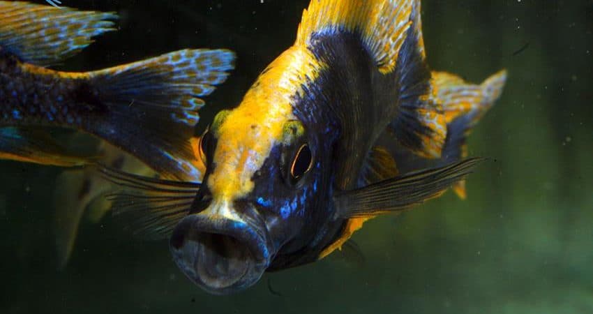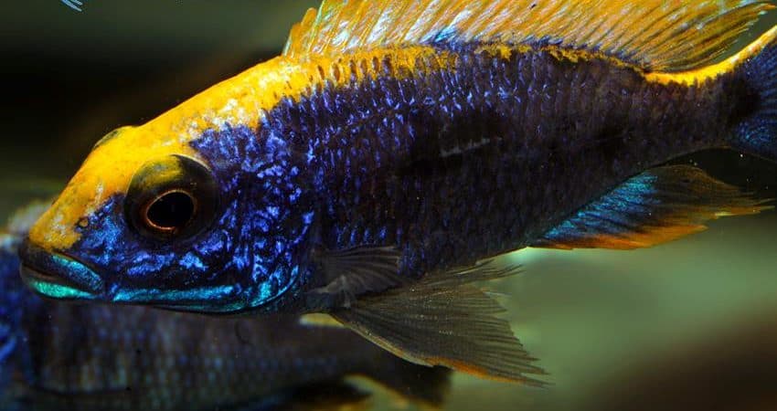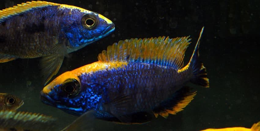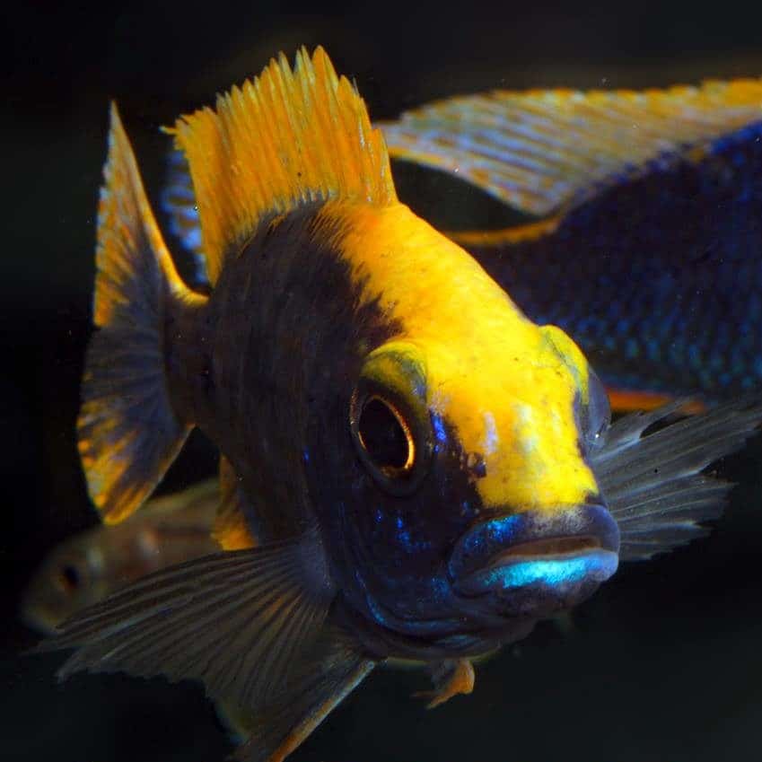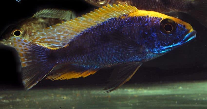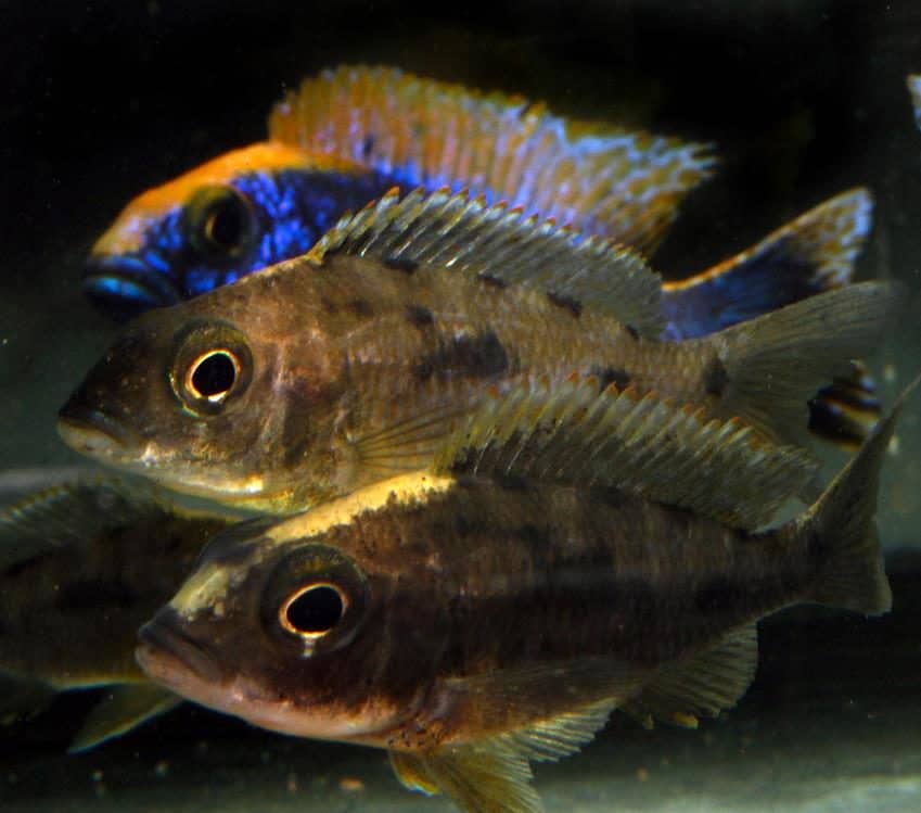 Die Männchen dieser Buntbarsche besetzen in der Natur Höhlen. Der leuchtende Kopfstreifen ist dort ein markantes Signal für vorbeiziehende Weibchen, die sofort angebalzt werden. Im Aquarium muss man darum für reichlich Versteckmöglichkeiten sorgen, in die sich Weibchen, die gerade laichunwillig sind, zurückziehen können, denn während sie im Malawisee einfach davon schwimmen können, werden sie im Aquarium oft arg drangsaliert.