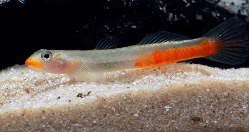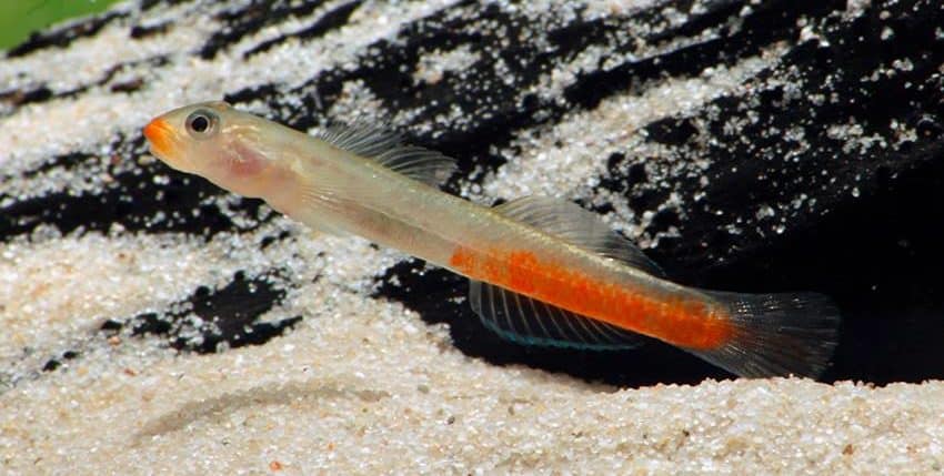 Aus Indonesien stammen diese wunderschönen Sicyopus-Grundeln. Diese sind – trotz äußerlicher Ähnlichkeit – keine Aufwuchsfresser, wie Stiphodon oder Sicyopterus, sondern Kleintierfesser, die deutlich größere Futterbrocken jagen. Dazu zählen auch kleine Fische und Garnelenbis zu einem Zentimeter Länge, obwohl die Grundeln selbst nur maximal 5-6 cm lang werden und sehr schlank gebaut sind.
