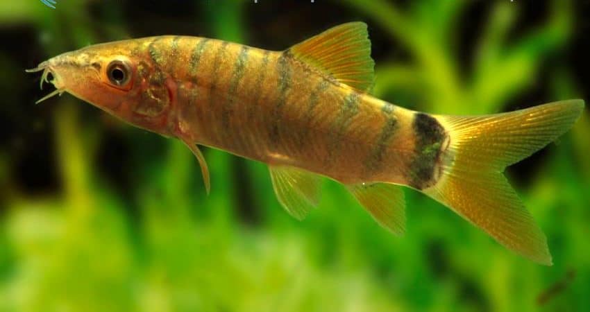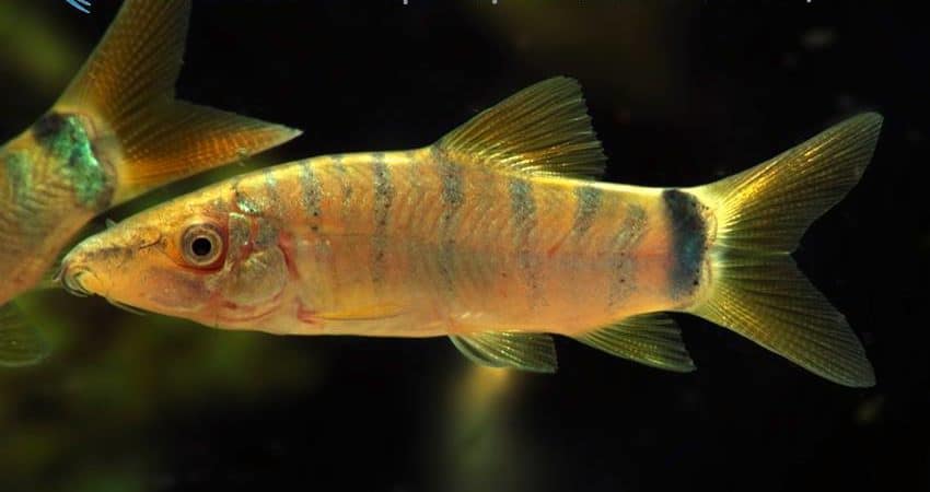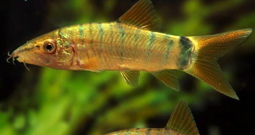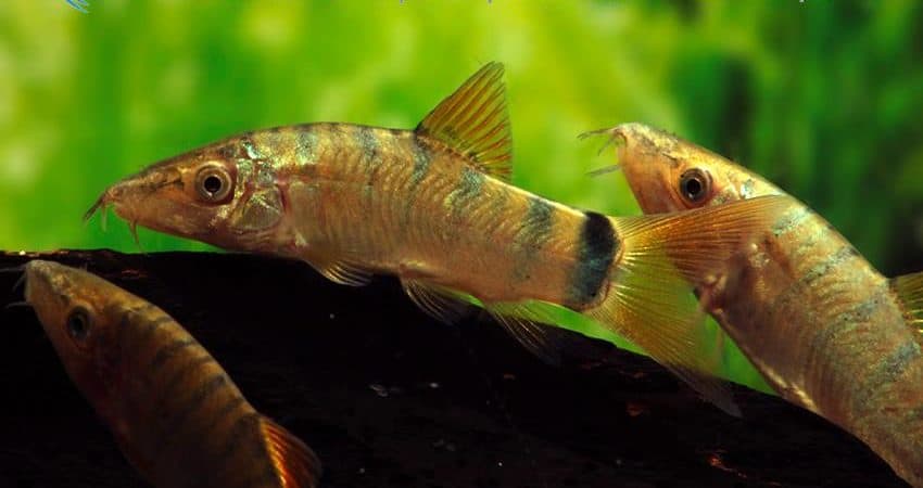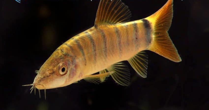 Aus Thailand stammt diese wunderschöne Farbvariante der Blauen Prachtschmerle (Yasuhikotakia modesta, früher Botia modesta). Diese Art ist bekannt dafür, zahlreiche Farbvarianten auszubilden. Oft sind die Fische blau mit roten Flossen, aber es gibt sie auch in grüner Färbung, manchmal auch bleifarben. Und die Flossenfärbung variiert, je nach Population, zwischen fahlgelb und leuchtend rot. Die Tigerzeichnung ist ein noch ungeklärtes Phänomen. Sie wird meist als Jugendzeichnung interpretiert, denn oft verlieren die Fische sie im Alter, aber es gibt auch Individuen, die sie zeitlebens behalten.