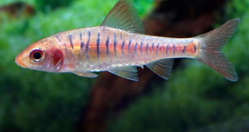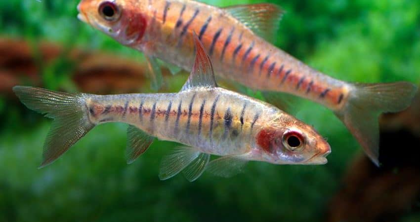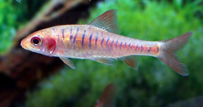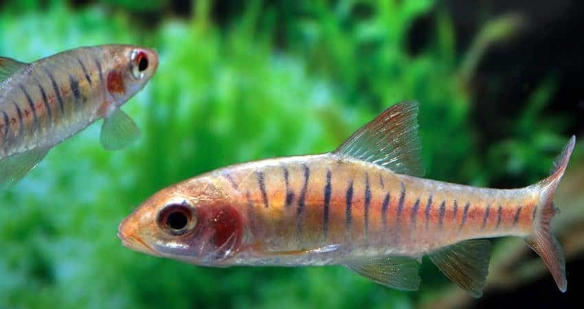 unten links: Enteromius fasciolatus (früher Barbus f.)