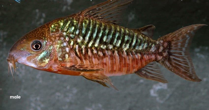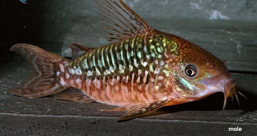 Corydoras pantanalensis, vor seiner Beschreibung auch als C5 bekannt. Mit gut 8 cm Körperlänge ist er auch einer der größten Panzerwelsarten aus der Gattung Corydoras. Er gehört in die engere Verwandtschaft von C. elegans. Alle Arten dieser Gruppe haben gemeinsam, dass Männchen und Weibchen farblich sehr unterschiedlich sind und dass die Fische oft im freien Wasser schwimmen, während andere Corydoras eher am Boden zu finden sind.