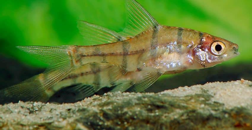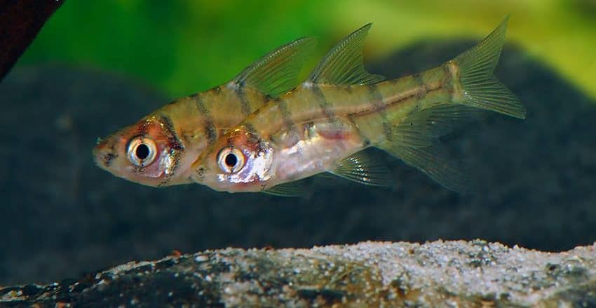 Es sind zarte, nur 3-4 cm lang werdende, ruhige Barben, die sich ideal für Nano-Aquarien mit Schwarzwasser eignen. Über die Zucht dieser außergewöhnlichen, extrem friedlichen Barbe wurde bislang nichts berichtet.