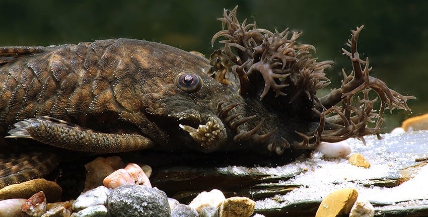 Gerade hat Glaser wieder einen Import solcher Ancistrus aus Paraguay erhalten, darunter auch rund 50 Exemplare in Show-Size (11-14 cm). Einige Männchen dieser Tiere haben ein derartig gewaltiges „Geweih“, wie sie es selbst unter Wildfängen bislang kaum zu Gesicht bekamen! Übrigens: Wozu dieses „Geweih“ der Ancistrus-Männchen überhaupt dient ist nach wie vor unbekannt…