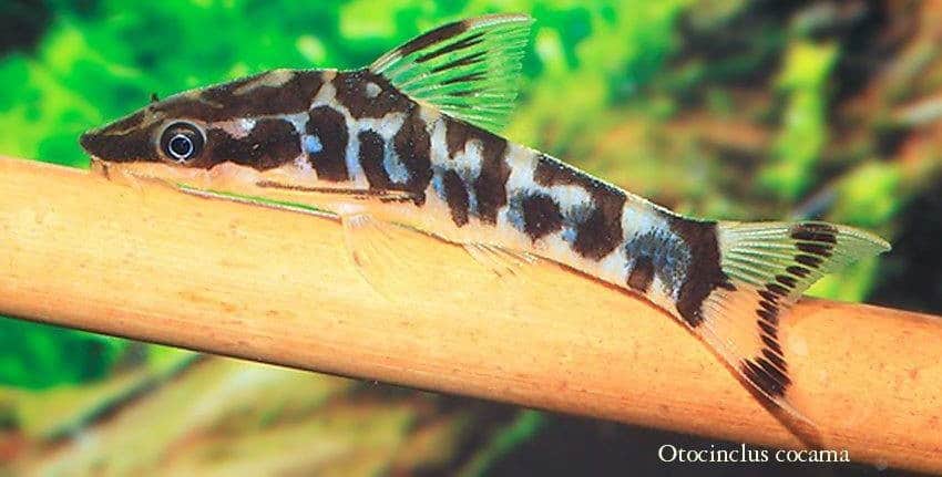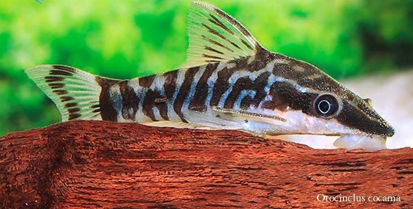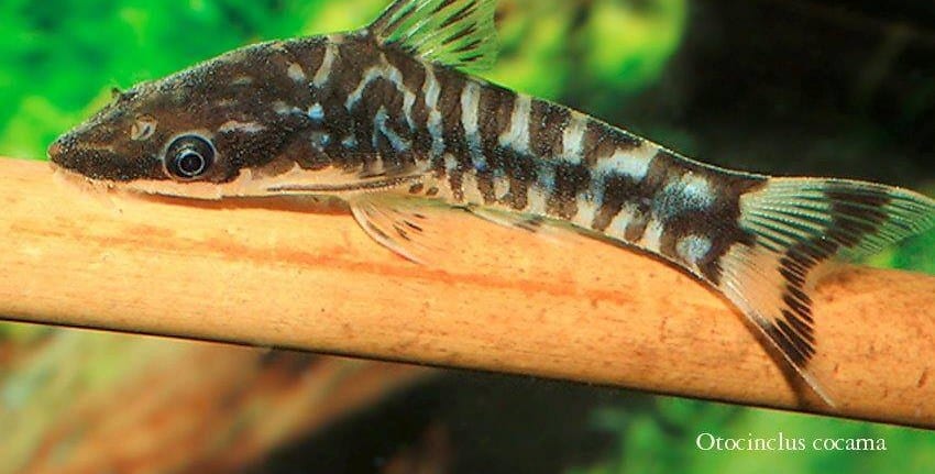 Die eine Art, Otocinclus cocama, ist häufiger erhältlich. Sie zeigt ein ziemlich dichtes Muster aus senkrechten schwarzen Streifen auf hellem Grund.