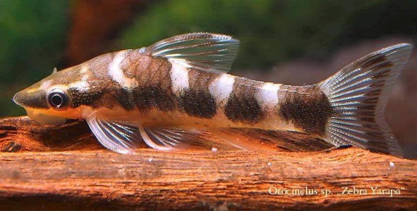 Nur in kleiner Stückzahl und sehr selten sind die breitgestreiften, besonders attraktiven Zebra-Otocinclus, der „Yarapa“ bekannt ist.