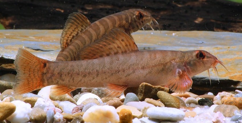 In Ruhefärbung sieht die Art, die sich von allen anderen Angehörigen ihrer Gattung durch die besonders lange Rückenflosse mit 13 1/2 bis 15 1/2 geteilten Flossenstrahlen unterscheidet, schon hübsch genug aus. Aber kommt das Tier in Fortpflanzungsstimmung, wird es sehr dunkel und die Flossen und Barteln intensiv rot. Die Weibchen (erkennbar am stärkeren Bauchumfang und anderer Brustflossenstruktur) färben sich intensiver als die Männchen.