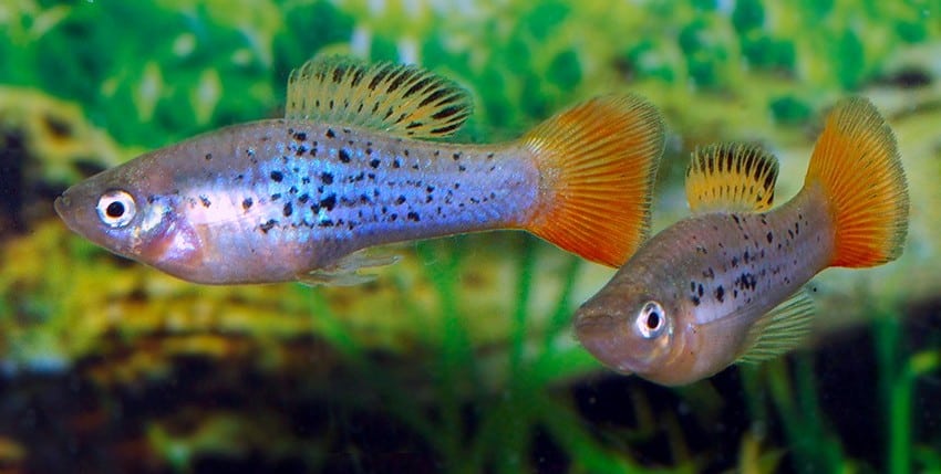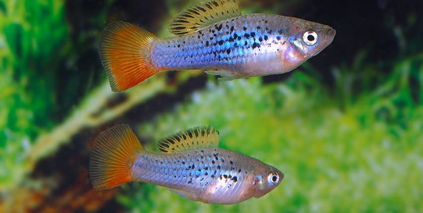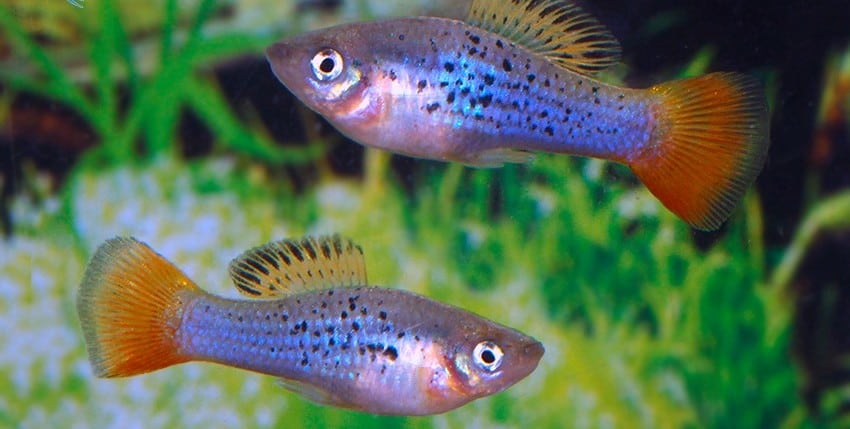 Die Besonderheit des Platy-Stammes liegt in den Flossenrändern der Rücken- und Schwanzflosse voll ausgefärbter Männchen, der so genannten Alpha-Männchen. Nicht immer zeigen alle Männchen diese Farben in voller Intensität; es ist günstig, mehrere Männchen gemeinsam zu pflegen, das stimuliert das Konkurrenzverhalten und sorgt für prächtige Farben.