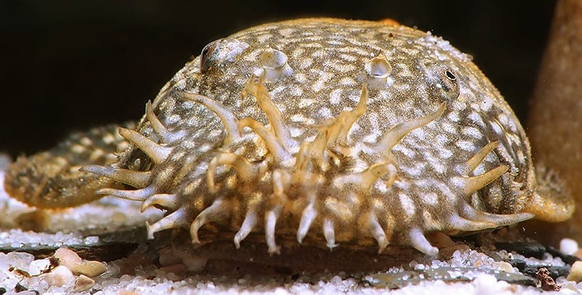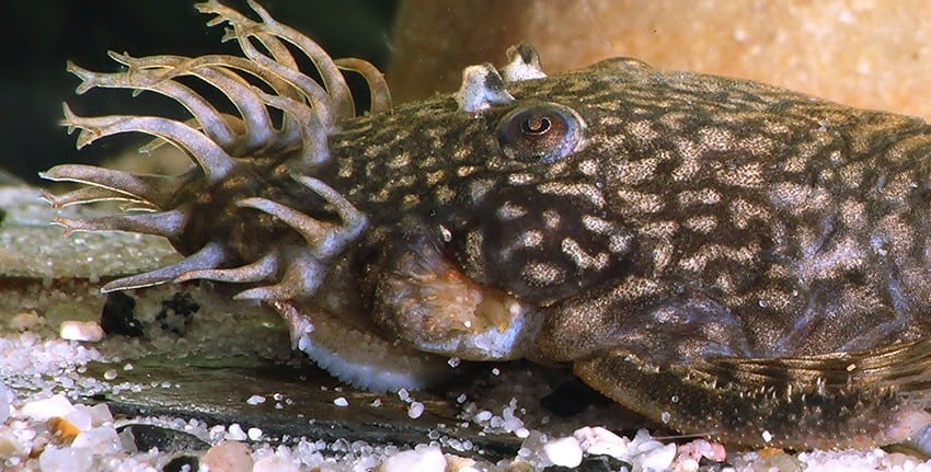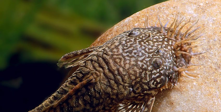 Zu den kleinsten Ancistrus-Arten überhaupt gehört Ancistrus claro, der vor seiner wissenschaftlichen Beschreibung als LDA 8 bekannt war. Der Antennenwels stammt aus Klarwasserbächen mit kräftiger Strömung im oberen Einzug des Rio Paraguay-Paraná-Einzuges und wird allerhöchstens 6-8 cm lang. Die Geschlechter sind nicht ganz so einfach zu unterscheiden wie bei anderen Ancistrus-Arten, denn genau wie die Zwergen-Frauen in Tolkiens „Herr der Ringe“ tragen die Weibchen des Zwerg-Antennenwelses kräftige Bärte…