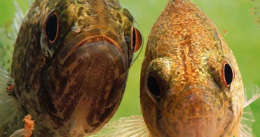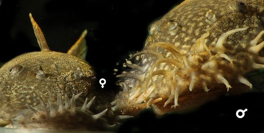 Bei einem aktuellen Import konnte Aquarium Glaser Männchen bei der Balz beobachten. Dabei färben sich Schnauze und Bauchtasche blitzschnell tiefschwarz. Genau so schnell kann das Männchen die schwarze Farbe auch wieder abschalten.