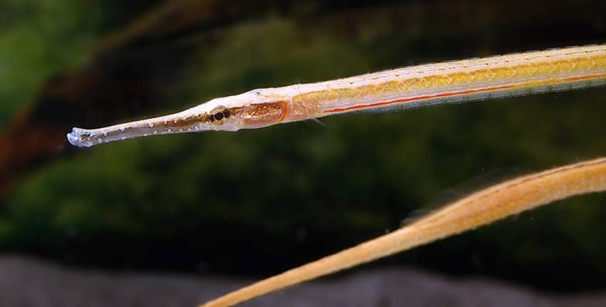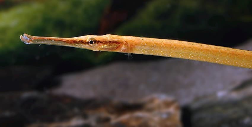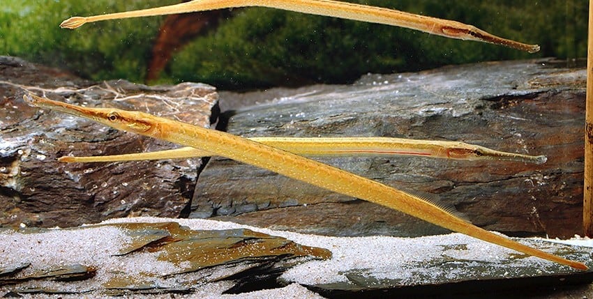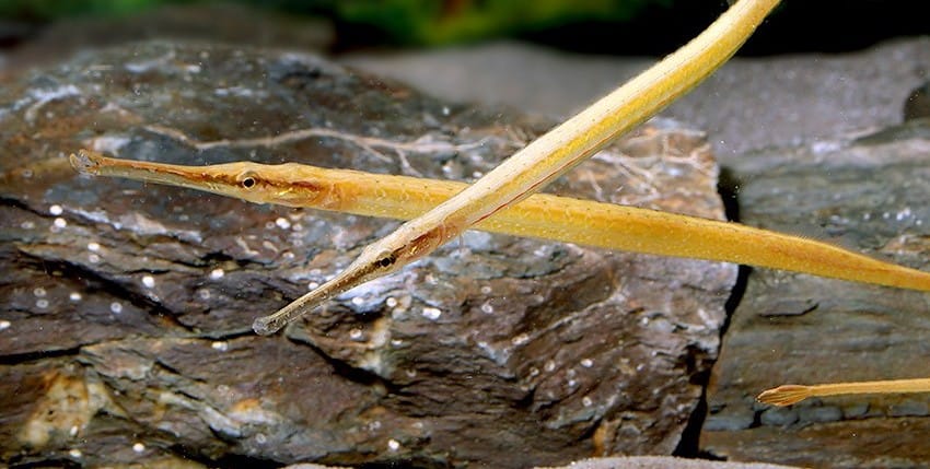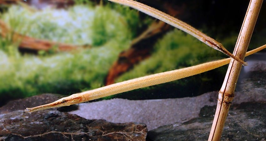 Die Kurzschwänzige Süßwassernadel (Microphis brachyurus) wurde aus Indonesien beschrieben. Lange Zeit glaubte man, es handele sich um eine Art mit weltweiter Verbreitung, die sich in den verschiedenen Verbreitungsgebieten nur geringfügig auf Unterartenebene unterscheide. Und so wurden M. lineatus (Code 430104 auf unserer Stockliste) und M. aculeatus (Code 149104) lange Zeit als Unterarten von M. brachyurus betrachtet. Heute sieht man alle drei als eigenständige Arten an.