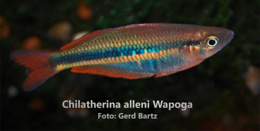 Dieser schöne, mittelgroße (9-10 cm) Regenbogenfisch stammt, wie alle Arten der Gattung Chilatherina, von der Insel Neu-Guinea, und zwar in diesem Fall vom zu Indonesien gehörigen Teil Iran Jaya. Entdeckt wurde Chilatherina alleni 1994 im Aiborei River. Anhand dieser Tiere wurde die Art 1997 wissenschaftlich beschrieben. Johannes Graf konnte 2008 einige Exemplare aus dem Wapoga-System mitbringen. Auf diese Tiere geht der aktuelle Stamm zurück.