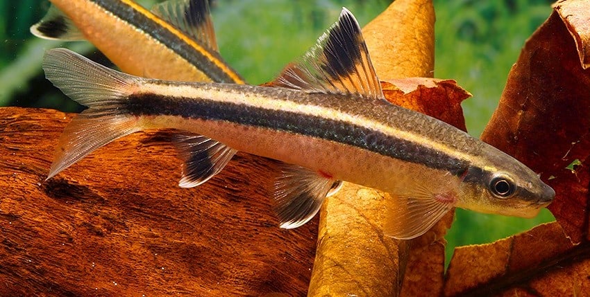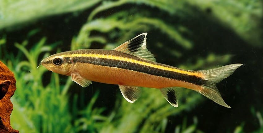 Die Schönflossige Rüsselbarbe, Epalzeorhynchos kalopterum (Epalzeorhynchos ist neutrum, darum muss der Artname wenn er – wie in diesem Fall – ein Adjektiv ist, auf die lateinische Neutrum-Endung -um enden), stammt ursprünglich aus Indonesien, Malaysia und Thailand, wo sie ein Bewohner von Fließgewässern ist, die tiefdunkelbraunes Schwarzwasser führen. Es sind die wohl schönsten Algenfresser überhaupt. Glaser hat von Zeit zu Zeit Nachzuchten im Angebot, weshalb nur noch relativ selten Wildfänge importiert werden. Importe stammen häufig als ausgewachsene Exemplare aus Singapur, wobei „ausgewachsen“ sich auf die wildlebenden Tiere bezieht. In der Natur erreichen sie nämlich 10-12 cm Länge, während alte Aquarienexemplare angeblich schon bis zu 16 cm lang wurden. Denn Fische wachsen zeitlebens (wenn auch nach Eintritt der Geschlechtsreife nur noch langsam und wenig) und da so eine Rüsselbarbe im Aquarium leicht 10-15 Jahre alt wird (in der Natur wohl kaum jemals über 3 Jahre), können sie u.U. ganz schön groß werden.