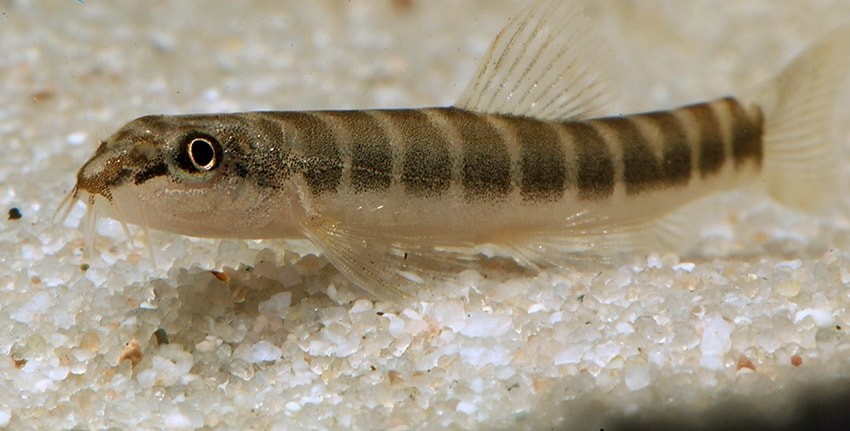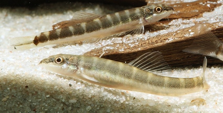 Was in Südamerika die Corydoras, das sind in Asien die Schistura-Schmerlen. In hunderten von Arten bevölkern sie praktisch jeden Bach und kleineren Fluss der tropischen und subtropischen Regionen des Kontinents. In vielen Fällen fällt die Bestimmung schwer oder ist unmöglich. Nicht so bei Schistura savona aus Indien. Ihr „Halbbinden“-Muster mit weißem Bauch macht sie bei aller innerartlichen Variation nahezu unverwechselbar. Im Gegensatz zu vielen anderen Schistura-Arten ist S. savona ein friedlicher Geselle und bleibt zudem mit ca. 4 cm Maximallänge auch noch sehr klein. So passt sie in jedes Gesellschaftsaquarium mit Bachcharakter. Die Art ist sehr gesellig, man sollte sie darum in Gruppen von 10 oder mehr Tieren pflegen. Die Männchen sind deutlich kleiner als die Weibchen. Der Bodengrund sollte zumindest stellenweise aus feinem Sand bestehen. Einige Wurzeln und flache, abgerundete Steine sollten ebenfalls nicht fehlen. Gefressen wird jegliches Fischfutter passender Größe, Pflanzen werden nicht behelligt, höchstens versehentlich ausgegraben. Schistura savona ist ein Fisch der Subtropen, braucht also in Zimmeraquarien keine zusätzliche Heizung: Temperaturen zwischen 16 und 26°C kommen in der Heimat der Fische vor. Allerdings sollte man die Fische keinen plötzlichen Temperaturschwankungen aussetzen, Änderungen nach oben oder unten sollten allmählich erfolgen. An die Wasserzusammensetzung werden keine besonderen Ansprüche gestellt, jedes als Trinkwasser geeignete Leitungswasser eignet sich auch zur Pflege von S. savona.