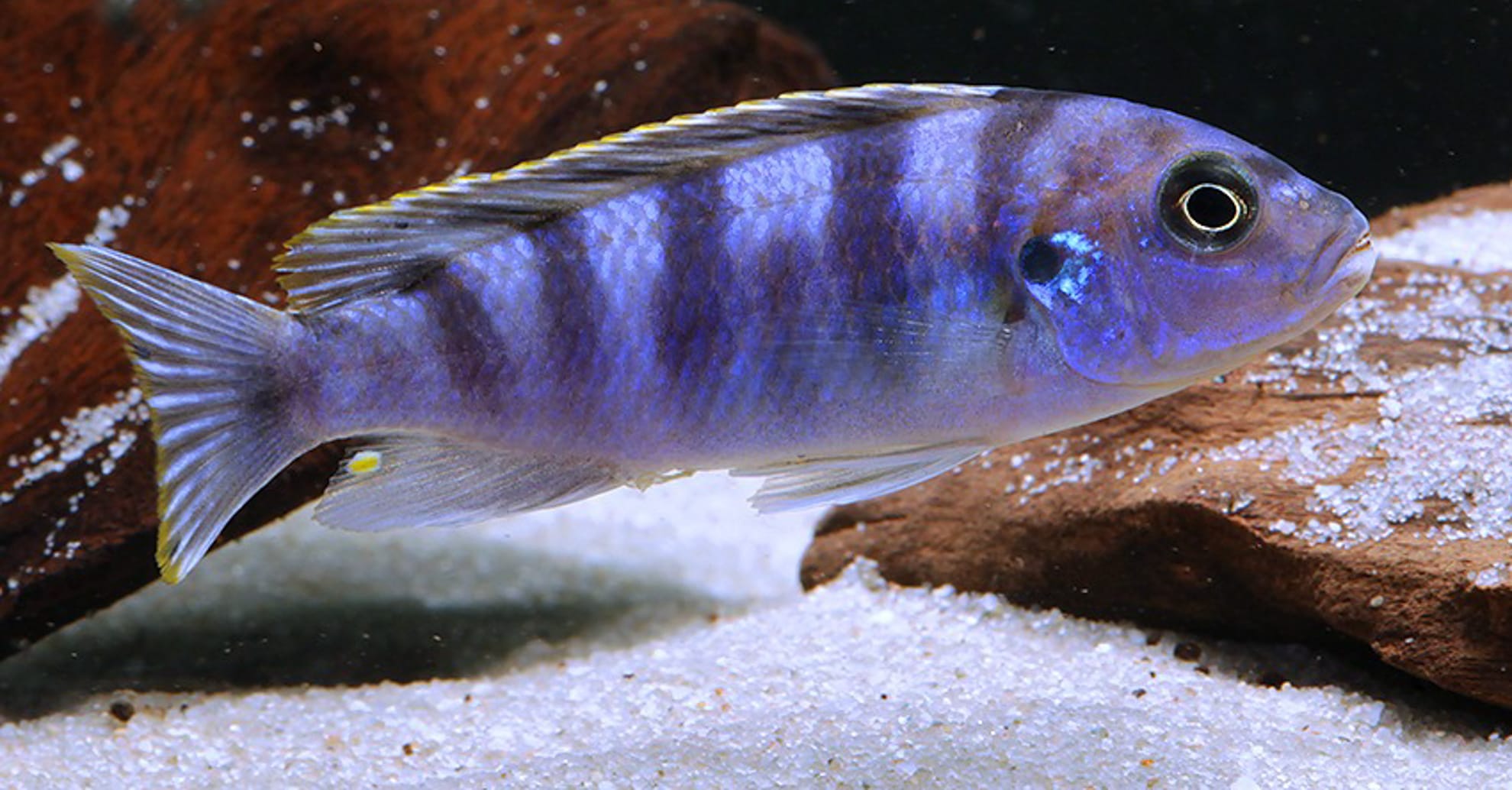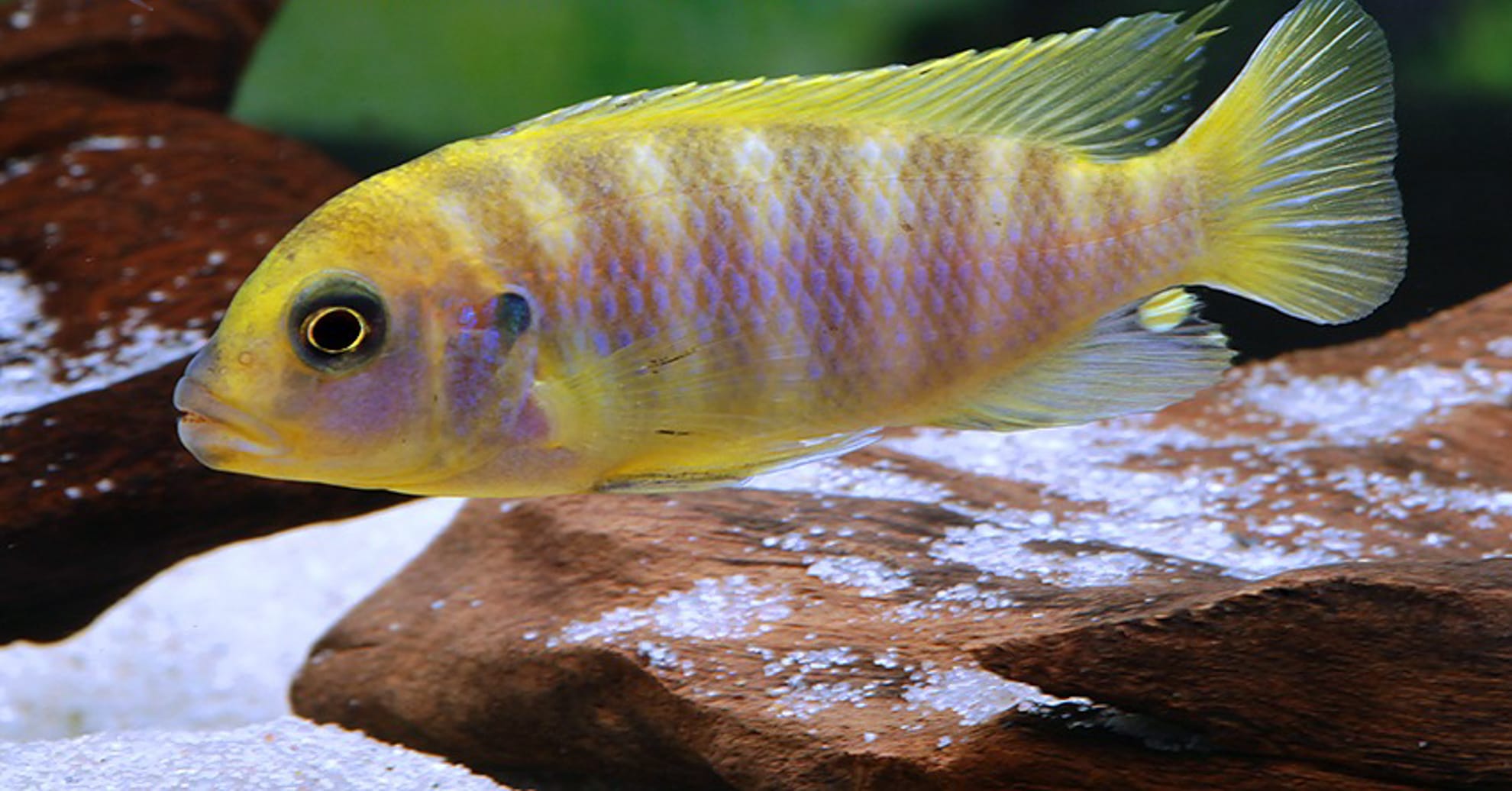 Wer erinnert sich noch an den Kunstunterricht in der Schule? Zu den ersten Dingen, die man lernt, gehören die Farbtemperaturen, richtig? Demnach sind Rot, Gelb und Orange warme Farben, Blau, Grün und Violett hingegen kalte Farben. Bei den Felsenbuntbarschen des Malawisees, den Mbuna, erstrahlen die revierbesitzenden Männchen gewöhnlich in kalten Farben (meist Blau), die Weibchen weisen warme Farben auf. Doch es gibt eine bekannte Ausnahme: Maylandia lombardoi. Hier ist es genau umgekehrt: Männchen in strahlendem Gelb (warm), Weibchen blau (kalt). Maylandia lombardoi kommt nur an wenigen Stellen des Malawisees, der ja riesig ist, vor. Ursprünglich stammt er von der Küste der Mbenji-Inselgruppe und vom Nkhomo-Riff, bei der Insel Namalenje gibt es eine wahrscheinlich allochthone 😊 dort ursprünglich nicht heimische, verschleppte) Population. Das macht die Art theoretisch anfällig für Überfischung und Umweltkatastrophen. Ersteres ist jedoch nicht zu befürchten, da der aquaristische Bedarf leicht und wesentlich kostengünstger durch Nachzucht als durch Wildfang zu decken ist. Auf letzteres haben wir hier keinen Einfluss. Maylandia lombardoi war einer der ersten Malawi-Buntbarsche und damals (in den 1970ern) richtig teuer. Viele Aquarianer mussten bitteres Lehrgeld zahlen, wenn sie sich darum nur ein Pärchen kaufen konnten. Denn revierbesitzende Männchen von M. lombardoi gehören zu den aggressivsten Mbuna überhaupt. Heutzutage ist das alles nicht mehr so tragisch. Große Aquarien (ab 150 cm Kantenlänge) und große Gruppen (nicht unter 10 Exemplaren, besser 20) sorgen für eine gerechte Verteilung der Prügel. Die Geschlechterzusammensetzung ist dabei eigentlich egal. Unterdrückte Männchen nehmen Weibchenfärbung an. Erkennbar bleiben sie aber immer an dem großen gelben Eifleck in der Afterflosse, der den Weibchen immer fehlt. Dominante Weibchen können übrigens auch gelbe Farbtöne entwickeln. So eine Truppe bunter Mbuna bietet ein sehr abwechslungsreiches Bild und unzählige Beobachtungsmöglichkeiten zum innerartlichen Verhalten diesen herrlichen Tiere, die übrigen 10-12 cm Länge erreichen. Die photographierten Tiere sind 4-6 cm lang.