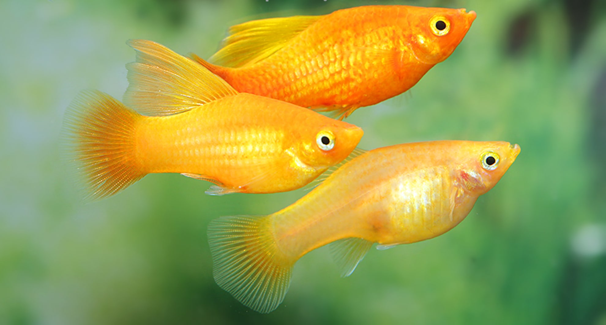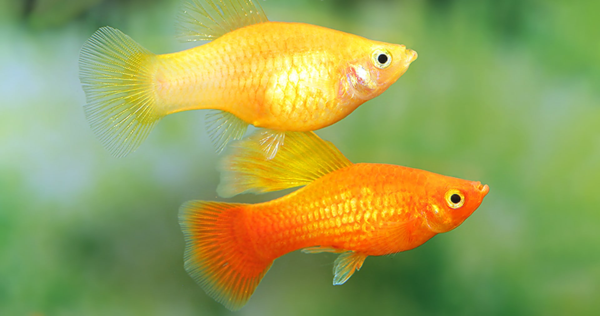 Im Vergleich zu den Zuchtvarianten von Xiphophorus maculatus, dem „gewöhnlichen“ Platy, gibt es nur vergleichsweise wenige Zuchtformen vom Papageienplaty. Das erstaunt insofern, als dass diese Art von Natur aus sehr variabel ist, daher ja der Artname „variatus = der Veränderliche“. Aber das macht es vielleicht auch komplizierter, farbliche Eigenschaften so zu fixieren, dass sich ein einheitliches Bild ergibt. Der Xiphophorus variatus Highfin Orange ist eine der wenigen Farbvarianten, die schon lange existieren. Alpha-Männchen, also die Chefs im Ring, färben sich besonders attraktiv ein. Bei ihnen ist die orange Grundfarbe noch von Rot überzogen, so dass „Sunrise“ oder „Sunset“ (also Sonnenauf- oder Sonnenuntergangsfärbung) entsteht. Die hohe Rückenflosse (englisch: Highfin) trat als Mutation erstmals bei Schwertträgern (Xiphophorus hellerii) auf und wurde über Kreuzung auf die beiden Platyarten übertragen. Interessanterweise scheinen weibliche Highfin-Platys von besonders hochflossigen Männchen sehr angetan zu sein, obwohl doch für dieses Merkmal in ihrem natürlichen Instinktrepertoire gar keine Verwendung besteht.
