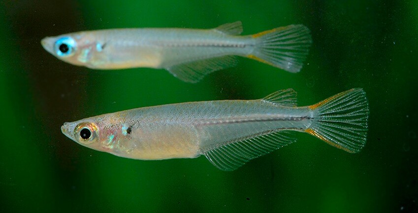 Die Wildformen der gegenwärtig so besonders beliebten Medaka (Oryzias) kommen im Kielwasser der Importe der Zuchtformen dieser Tiere ebenfalls ab und zu im Handel auf, während sie vorher ausgesprochene Spezialistenfische waren. Die Gattung Oryzias – neben dem japanischen Populärnamen „Medaka“ werden sie auch als Reiskärpflinge bezeichnet – umfasst aktuell 34 anerkannte Arten. Zu den immer noch mysteriösen Arten unter ihnen gehört Oryzias pectoralis, der 1998 wissenschaftlich beschrieben wurde. Der Beschreiber, Tyson Roberts, schildert die Entdeckungsgeschichte der Art folgendermaßen: „Die Typenserie stammt von einem jungen Mädchen, das ein oder zwei Kilometer südlich der Stadt Laksao mit einem kleinen Korb am Straßenrand spazieren ging, der hauptsächlich mit Mollusken, aber auch mit Wasserinsekten, Garnelen und Fischen gefüllt war, die sie in einem nahegelegenen Reisfeld gefangen hatte; daher sind die Exemplare nur in gutem Zustand. (Anmerkung FS: das soll ganz sicher heißen: nur in mäßig gutem Zustand). Abgesehen von der Typenserie hat Glaser ein etwas größeres Exemplar mit einigen viel kleineren Exemplaren gesehen, die alle einen schwarzen Fleck auf dem Brustflossenansatz aufwiesen (dieses Exemplar wurde in der Nähe von Laksao während der Bewertung der Auswirkungen auf die Gewässer durch Berater der Team Consulting Co. und der Nam Theun 2 Project Development Group gesammelt). Der Fleck ist also sowohl für recht kleine Jungtiere als auch für ausgewachsene Tiere beider Geschlechter charakteristisch.“ (Übersetzung FS). Da das einzige sichere Unterscheidungsmerkmal, das Roberts gegenüber anderen Oryzias-Arten angab, der schwarze Fleck am Ansatz der Brustflosse ist, wurde die Gültigkeit von O. pectoralis schon häufig in Frage gestellt. Die gezeigten Tiere stammen aus Vietnam, haben aber allesamt den berühmten schwarzen Fleck. Leider sind es nur verhältnismäßig wenige Tiere (ca. 50 Exemplare). Sehr interessant ist, dass es im Schwarm Tiere mit leuchtend blauem und kupferrotem Augenrig gibt. Dieses Merkmal ist offenbar nicht geschlechtsspezifisch. Vielleicht gelangen diese Oryzias ja in die Hände von Liebhabern, die durch langfristige Zucht herausfinden, welche Erbregeln hinter den verschiedenfarbigen Augen stehen. Die Pflege und Zucht dieser kleinen, nur maximal 3 cm langen Art, sind einfach, es handelt sich um völlig friedliche Fische ohne spezielle Anforderungen an die Wasserzusammensetzung, jedes passende, ausreichend kleine Zierfischfutter wird willig angenommen. Die Wassertemperatur kann sich im Bereich von 22-28°C bewegen, etwas mehr oder weniger schaden auch nicht.