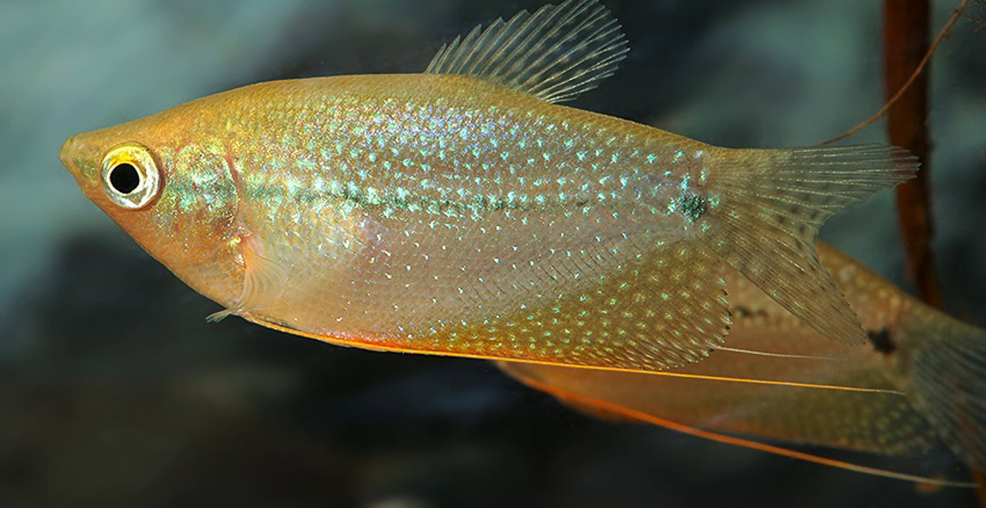 Der Medaka (Oryzias latipes) erfreut sich aufgrund seiner zahlreichen Varianten großer Beliebtheit. Aktuell sind besonders die sogenannten „Sparkled“-Morphen gefragt. Diese Tiere zeichnen sich durch verstreut angeordnete, silberweiße Glanzschuppen aus. Je nach Grundfärbung werden „Sparkled“-Varianten in Orange, Grau oder Blau angeboten.