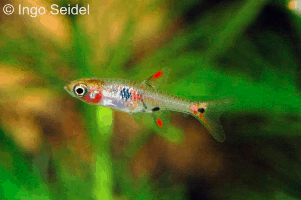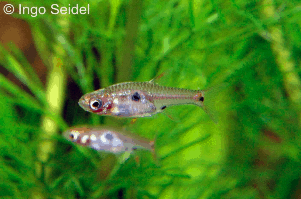 Erst im Jahre 2011 wurde dieser hübsche kleine Zwergbärbling aus Thailand beschrieben. Zuvor wurde der Erdbeer-Zwergbärbling (Boraras naevus) als Boraras micros „red“ bezeichnet. Besonders die Männchen dieser völlig friedlichen Zwergfische bilden nach Eingewöhnung eine kräftig rote Färbung aus. Die Weibchen sind etwas schlichter gefärbt. Es handelt sich um friedliche Schwarmfische, die bei 23-27 °C problemlos auch in Leitungswasser gepflegt werden können. Sie können mit Flockenfutter und feinem Lebend- und Frostfutter (Nauplien des Salinenkrebses, Cyclops etc.) ernährt werden.