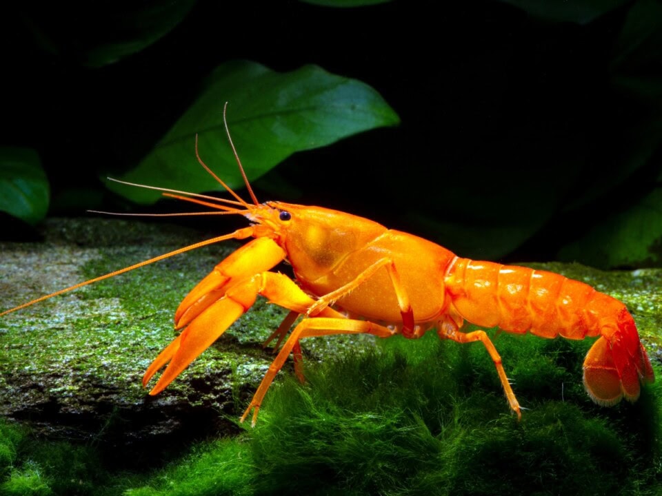 Der Neon-Orange-Zierkrebs ist für seine strahlende, orange Farbe bekannt, die in gut beleuchteten Aquarien besonders leuchtend erscheint. Diese Art ist relativ pflegeleicht und benötigt Versteckmöglichkeiten in Form von Höhlen oder Wurzeln, um sich sicher zu fühlen und ihre natürlichen Verhaltensweisen auszuleben.
