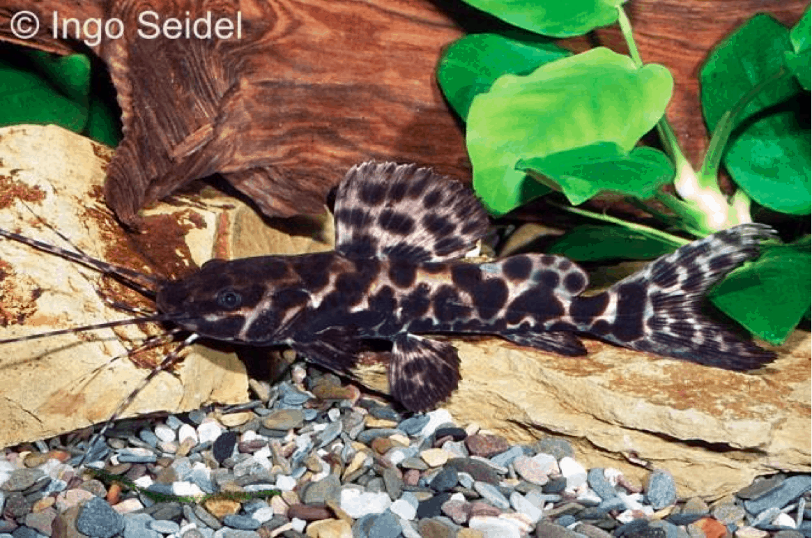 In der Jugend ist der Marmor-Prachtantennenwels (Leiarius marmoratus) sicherlich einer der attraktivsten Raubwelse. Wir haben derzeit wunderschöne Jungtiere in einer Größe von 7-9 cm im Angebot. Man sollte jedoch bedenken, dass diese gefräßigen Fische auf Dauer wirklich nur für Großaquarien geeignet sind. Dieser Räuber ist in Südamerika sehr weit verbreitet und im Amazonas-, Orinoco- und Essequibo-Becken beheimatet. Häufig wird diese Art auch heute noch mit dem ähnlichen Leiarius (früher Perrunichthys) perruno verwechselt, der im Maracaibo-Becken in Venezuela und Kolumbien lebt. Die Jungtiere werden z. B. mit Roten und Weißen Mückenlarven gefüttert. Die Tiere lassen sich später jedoch auch problemlos an Granulatfutter sowie Muschel- und Fischfleisch gewöhnen.