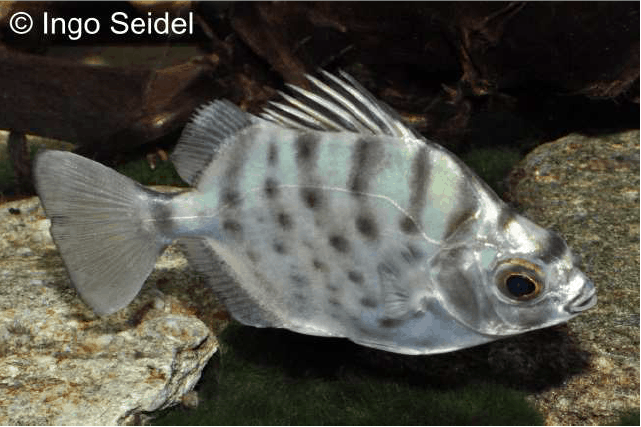Der Silber-Argus (Selenotoca multifasciata), eine im Indo-Westpazifik weit verbreiteten Art, die z.B. in Indonesien die Ästuare und Mangrovengebiete bewohnt. Argusfische sind in Schwärmen auftretende Barschverwandte, die nur für größere Aquarien geeignet sind, denn sie erreichen im Aquarium mindestens 20 cm Länge. Die Maximallänge von S. multifasciata ist 40 cm. Wie die meisten Brackwasserfische ist auch diese Art bezüglich des Salzgehaltes recht tolerant. Es empfiehlt sich jedoch ein Zusatz von 5-20 g Meersalz pro Liter Wasser. Die Art sollte bei 20-28 °C gepflegt werden.