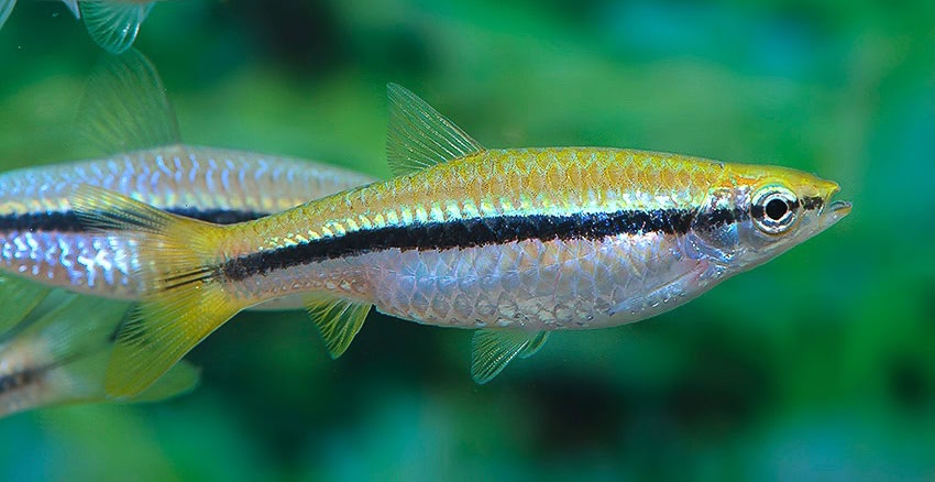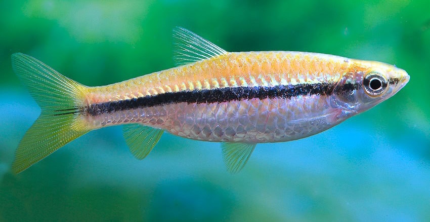 Aus Indien konnte Rasbora daniconius importiert werden. Dieser Bärbling wird in der Regel 6 bis 8 cm lang, wobei das größte bekannte Exemplar angeblich 15 cm erreicht hat. Die Art kommt in Bengalen vor, gemeinsam mit bekannten und beliebten Zierfischen wie dem Zebrabärbling (Danio rerio), Prachtbarbe (Pethia conchonius), Zwergfadenfisch (Colisa lalius) und Blaubarsch (Badis badis). Rasbora daniconius bildet einen hübschen Kontrast im Gesellschaftsaquarium zu den genannten Arten.
