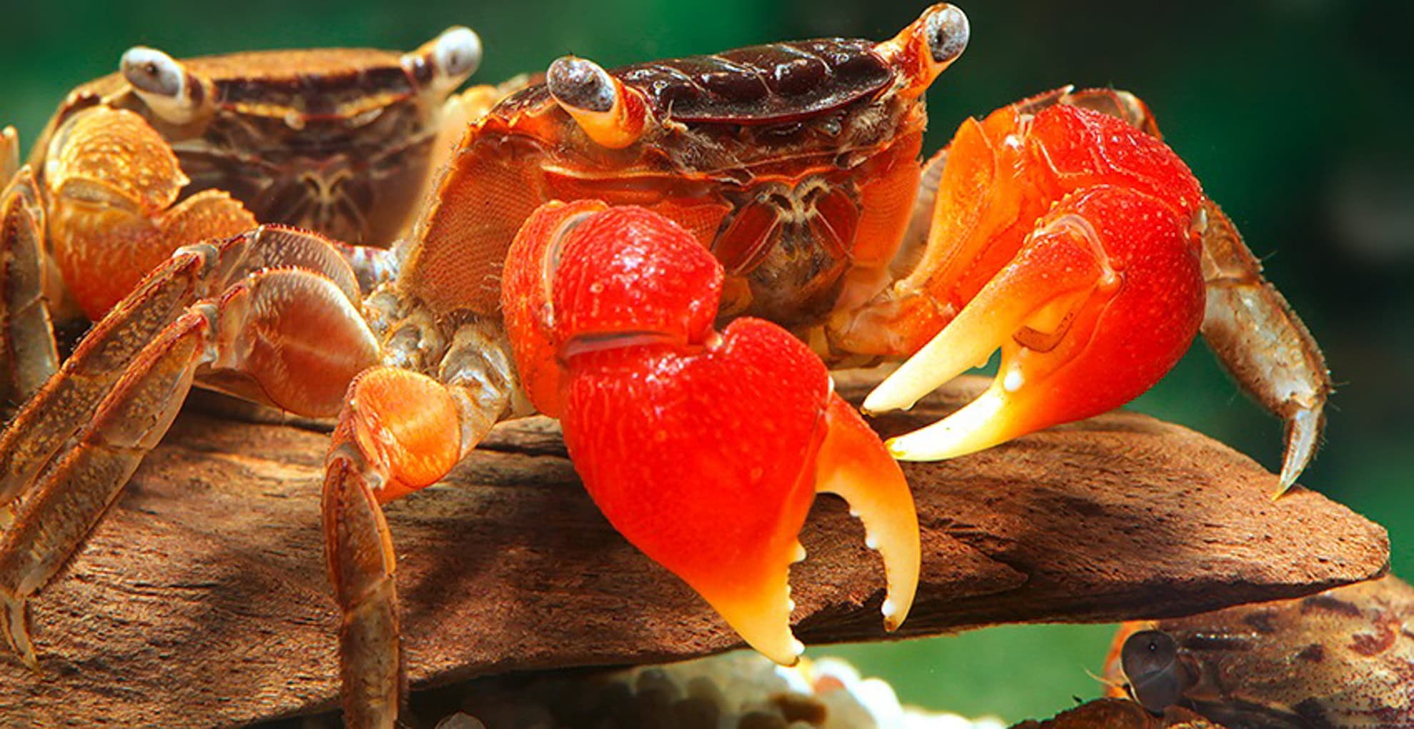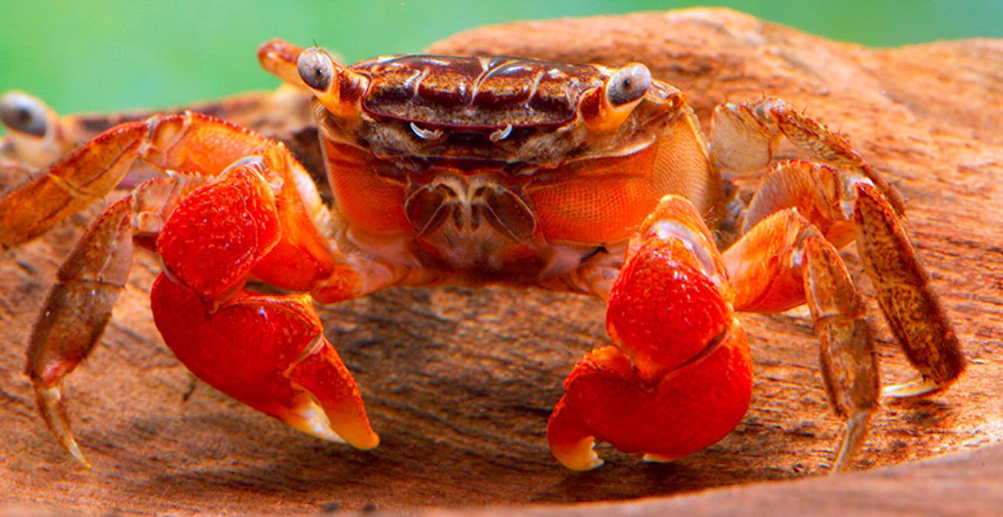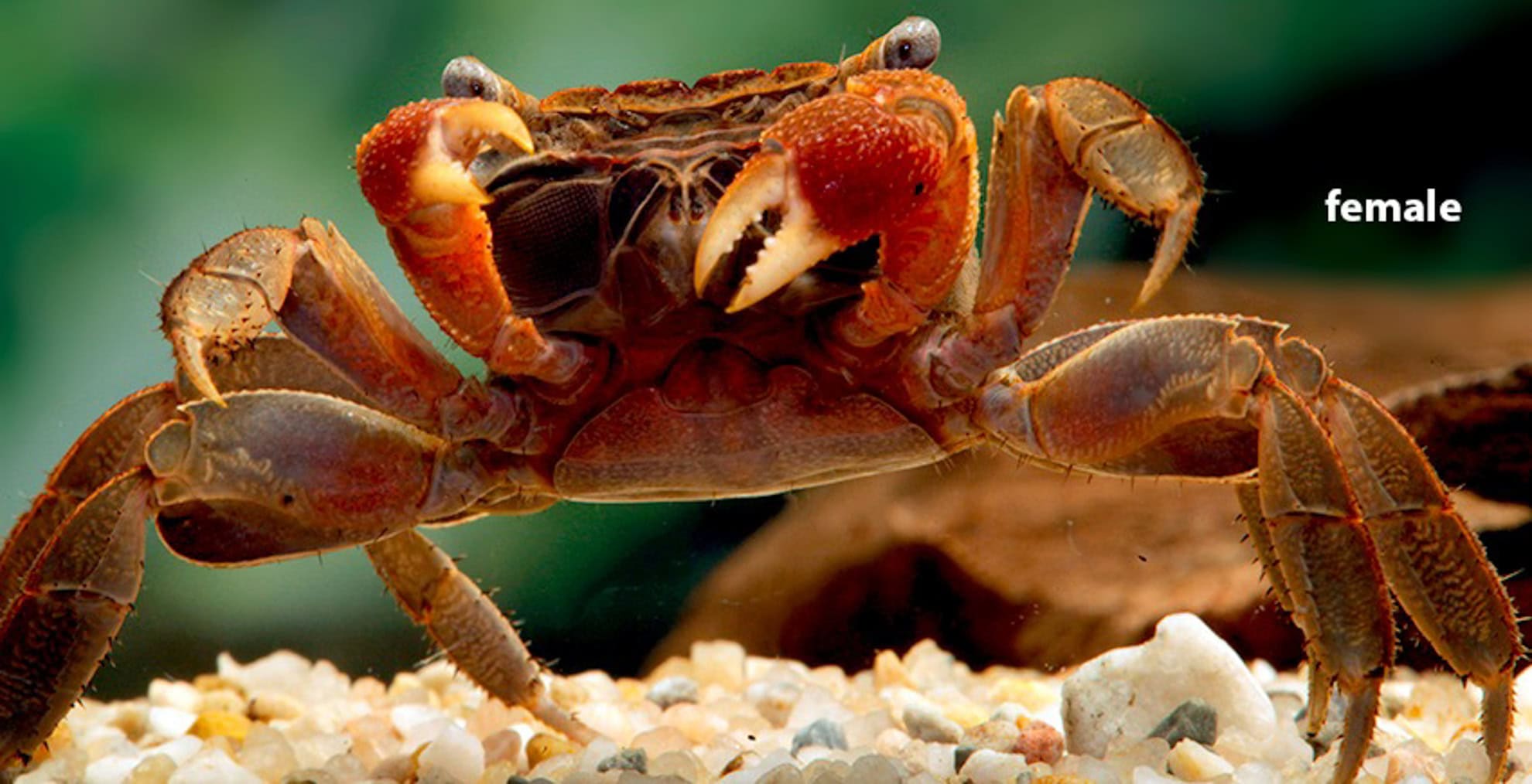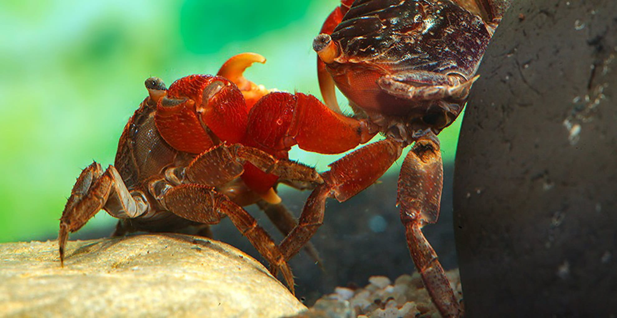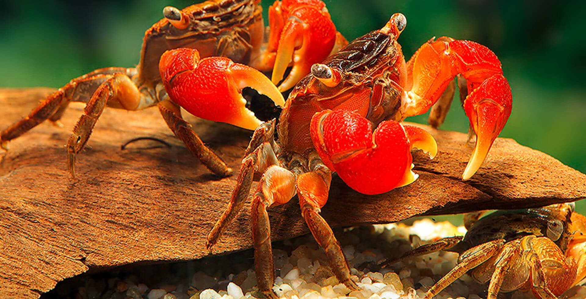 Diese farbenfrohen Krabben sind nicht nur hübsch anzusehen, sondern auch sozial – daher sollten sie immer in Gruppen gehalten werden. Als Bewohner feuchter Lebensräume benötigen sie ein Paludarium mit Land- und Wasseranteil. Ein leichter Salzzusatz von 5–10 g/l im Wasser wirkt sich nachweislich positiv auf Gesundheit und Aktivität aus.