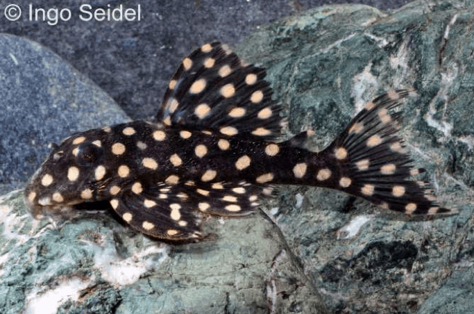 Unter der Bezeichnung L 201 kann man aus Kolumbien im Jahresverlauf recht unterschiedlich gefärbte Tiere importieren. Der „echte“ L 201 ist an sich schon ein recht variabler Harnischwels, der wissenschaftlich noch nicht beschrieben ist und zumeist in der fein punktierten Variante zu uns gelangt. Nur für eine kurze Saison im Jahr gelangen schöne große und sehr grob gefleckte „L 201“ nach Deutschland, bei denen es sich dann um die Art Hypancistrus contradens handelt. Diese wunderschönen L- Welse mit zumeist gelblichen Flecken haben wir aktuell im Angebot. Diese etwa 12 cm groß werdende Art sollte bei Wassertemperaturen von 25-29 °C gepflegt und kann in nicht zu hartem Wasser sogar recht einfach vermehrt werden. Die Fütterung ist mit Futtertabletten möglich.