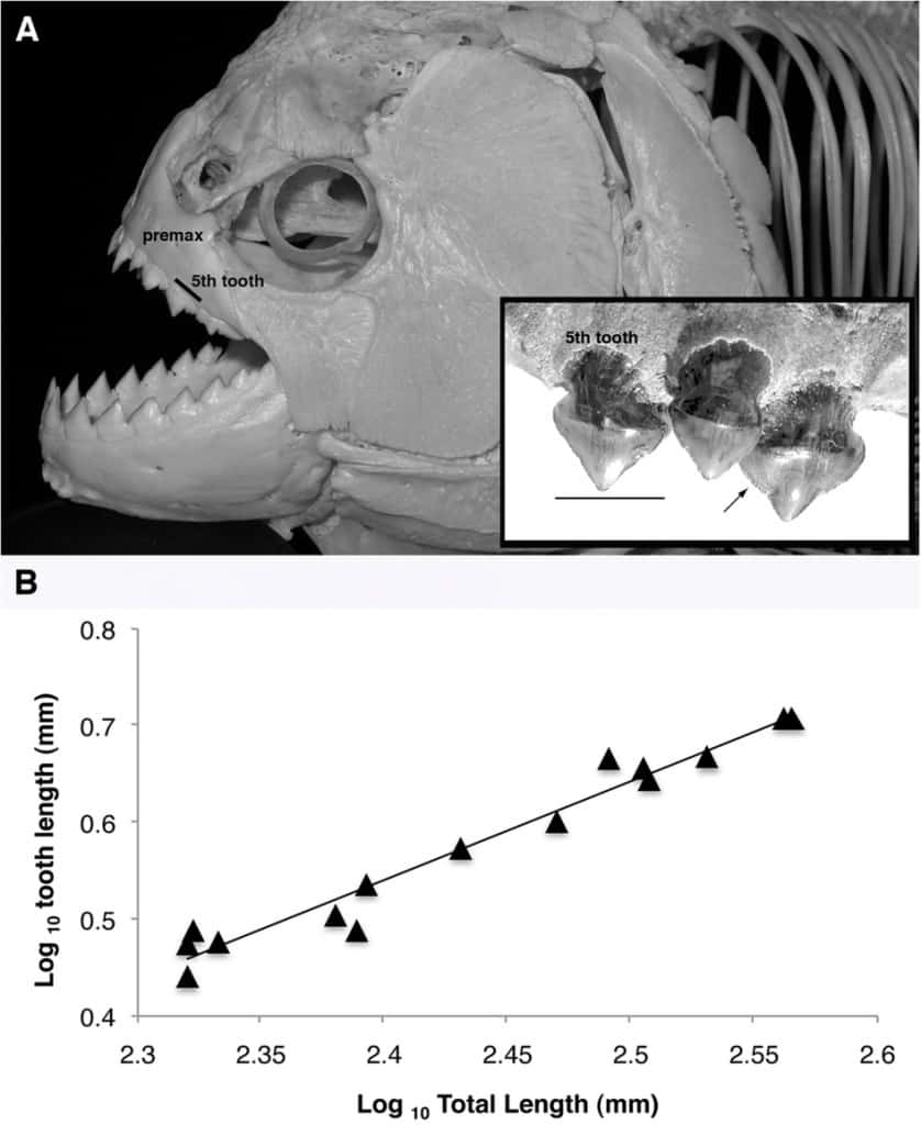 Mit 320 Newton kann der Schwarze Piranha aufgrund seiner großen Kiefermuskeln mit einer Kraft zubeißen, die dem 30-Fachen seines Körpergewichts entspricht. Das haben Forscher in einer Studie kürzlich herausgefunden. Das macht ihn zum stärksten (Zu-)Beißer in der Welt der Knochenfische. Im Vergleich mit anderen Tiere, ist es mehr als die Beißkraft eines Weißen Hais oder des Tyrannosaurus rex