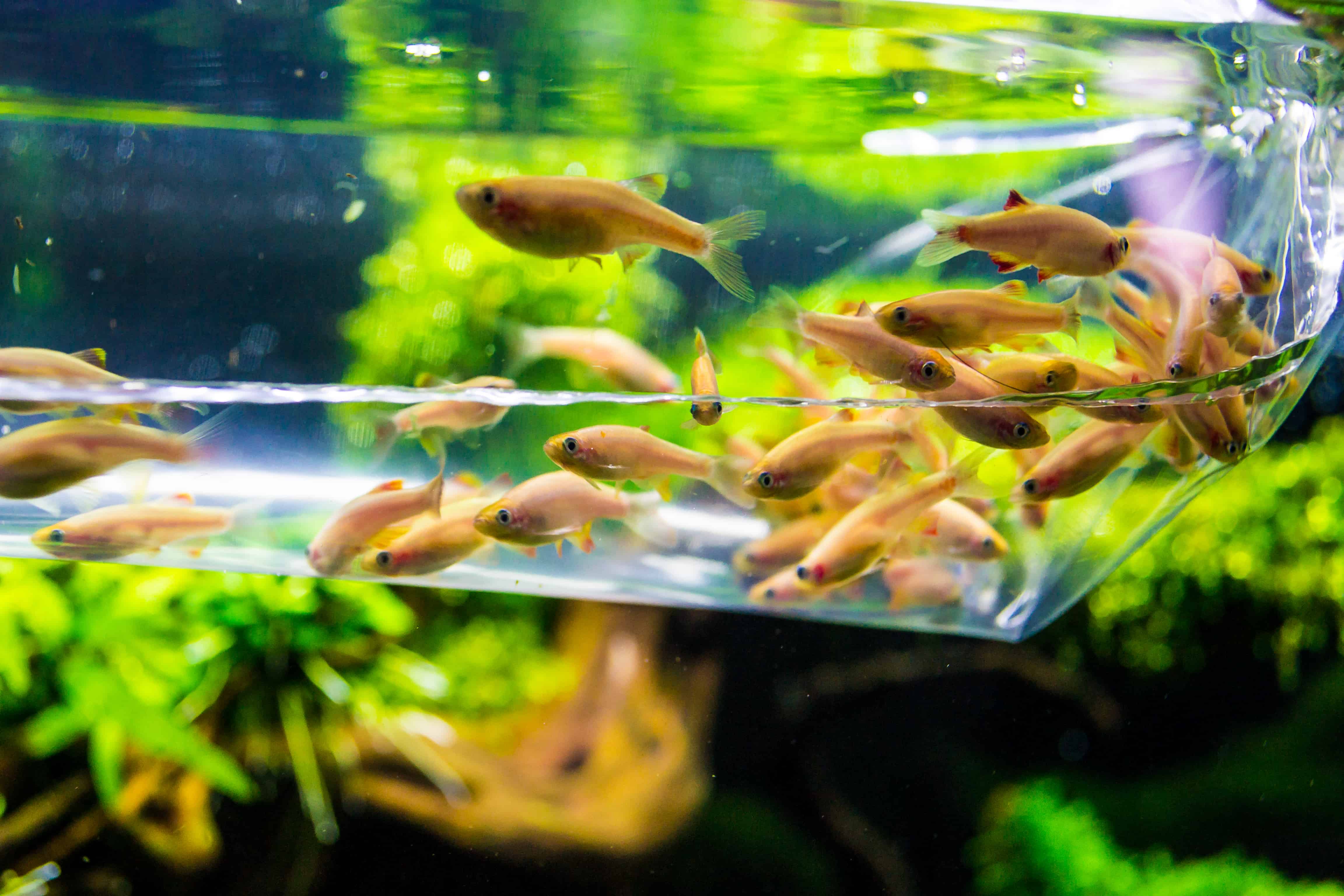 Die Tiere werden fachmännisch eingesetzt. Zunächst wird die Temperatur angepasst.