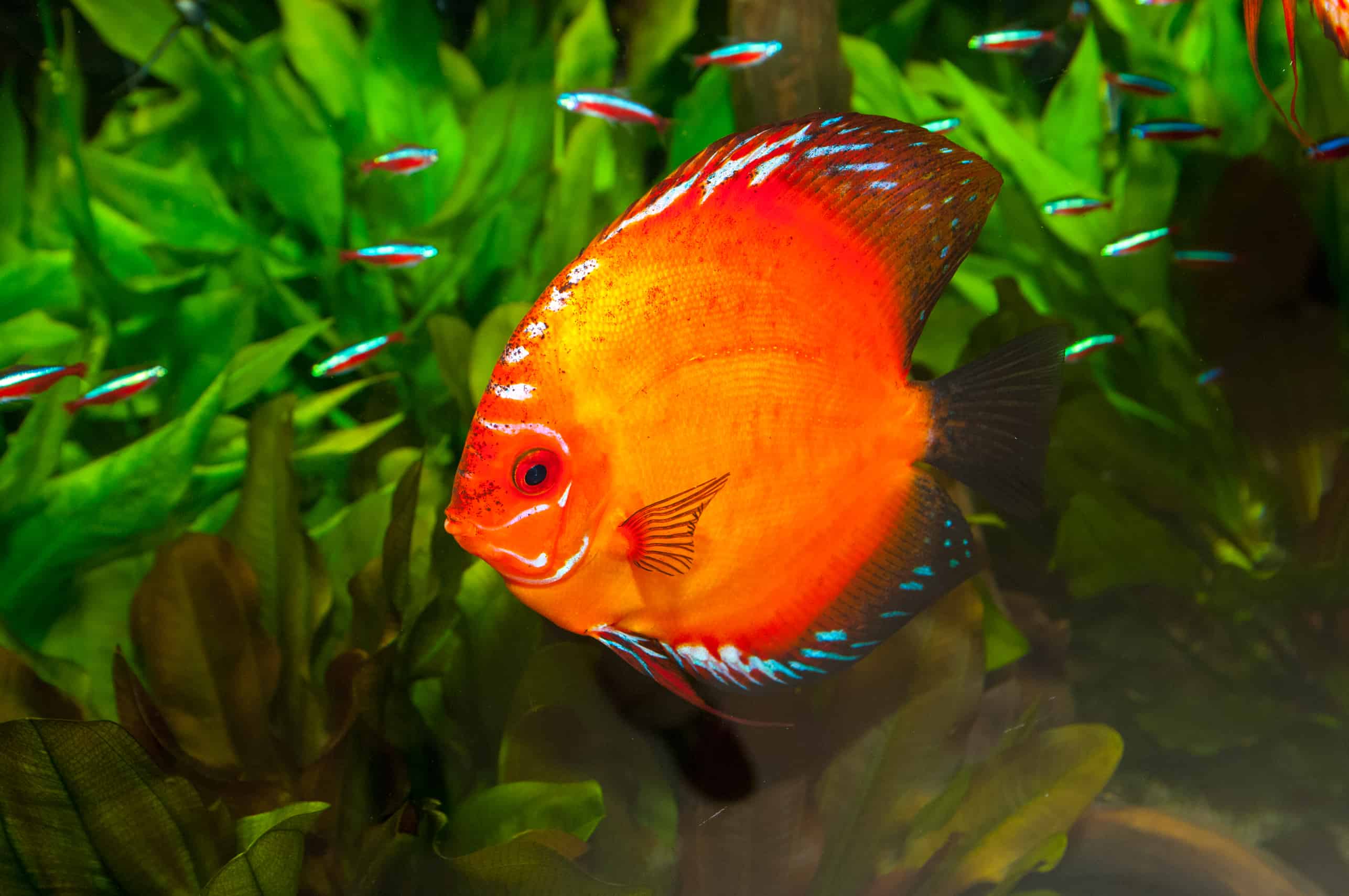 Auch das Temperament der unterschiedlichen Aquarium-Fische gilt es bei der Auswahl nicht völlig außer Acht zu lassen. Sehr lebhafte Arten könnten in einem kleinen Becken eher ruhige Vertreter empfindlich stören. Die majestätischen, etwa 18 Zentimeter langen Diskusfische gehören beispielsweise zu den Tieren, die überhaupt keinen Stress mögen. Vor allem scheue Fische und nachtaktive Arten wie etwa die Dornwelse benötigen in einem Gesellschaftsaquarium genügend Möglichkeiten sich zurückzuziehen. Für tagaktive Tiere ist dagegen eine ausreichend große, freie Schwimmfläche entscheidend. Sind diese Voraussetzungen gegeben, ist das Zusammenleben kein Problem. In vielen Fachbüchern, im Internet und im Fachhandel erhalten Einsteiger in die Aquaristik alle notwendigen Informationen darüber, welche Fische gut zusammen passen.