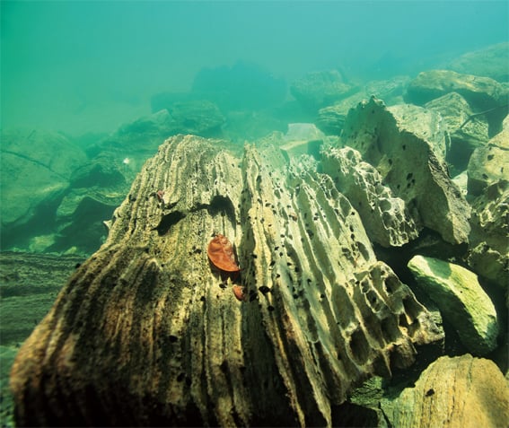 Die Einrichtung des Aquariums sollte ebenfalls ein wenig den natürlichen Bedingungen angeglichen werden. Unterwasserbilder der Biotope zeigen viele Steine, Felsen, wenige bis keine Pflanzen und Sandboden zwischen den Steinen. Unser beliebtes Lochgestein findet man auf der Welt nur an wenigen Orten, z.B. im Pantanal und in Florida. Trotzdem nutzen wir es aus dekorativen Gründen gern für Malawi- und Tanganjikasee oder auch Sulawesi-Aquarien. Das macht nichts – auch wenn es nicht so aussieht, wie in den Seen selbst. Auch die Angst, dass kalkhaltiges Lochgestein die Härte im Wasser erhöhen würde, ist unbegründet. Durch den hohen pH-Wert um 8 sind nicht genügend Säuren vorhanden, um den Kalk aufzulösen. Würde man aber kalkhaltiges Material in ein Diskusaquarium mit pH 6 stellen, würde es durch das saure Wasser langsam aufgelöst werden. Ein letzter Punkt, der mit normalen Wassertests nicht zu ermitteln ist, wäre die Keimdichte im Aquarium. Wildfänge sind aus ihren natürlichen Lebensräumen große Wassermengen mit wenigen pathogenen (krankheitserregenden) Keimen gewohnt und haben sich darauf eingestellt. Im Aquarium wird zwar die Wassermenge auf Nanoformat eingedampft, nicht aber die Tieranzahl pro Quadratmeter. So steigt die Zahl der Keime im Aquarium und Garnelen- Fachleute wie die LOGEMANN-Brüder und Roland NUMRICH haben UV-C Wasserklärer im Versuch, um die Ausfallrate bei den Sulawesi-Wirbellosen zu senken. Noch immer treten Krankheiten und Verluste der Tiere in der zweiten oder dritten Generation auf, die vermutlich auf eine zu hohe Keimzahl zurückzuführen sind. Bei der Anschaffung von UV-C Wasserklärern ist zu beachten, dass sie für zwei verschiedene Anwendungszwecke eingesetzt werden: Zur Beseitigung von Schwebealgen, die zu grünem Wasser führen und zur Teilentkeimung des Wassers. Für die Teilentkeimung ist jedoch eine höhere Wattzahl nötig, als für die Schwebealgenbekämpfung.