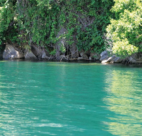 Wer die Wasserwerte der inzwischen populären Seen auf Sulawesi das erste Mal liest, glaubt an einen Druckfehler: 30°C – okay, so warm ist es auch im Rio Negro, Gesamthärte mittelprächtig mit 5 bis 6°dGH – das ist auch nichts Besonderes, aber jetzt kommts: pHWert von 8,0 bis 8,2! Aus den Tropen ist man bei weichem bis mittelhartem Wasser eher niedrige pH-Werte gewöhnt. Aber pH 8? Solche hohen, alkalischen pH-Werte findet man eher im Tanganjika- und Malawisee. Und wer genau hinsieht, wird feststellen, dass auch der Malawisee nicht so hart ist, wie die meisten annehmen. Er besitzt ebenfalls nur mittelhartes Wasser mit GH-Werten um die 5 bis 6°dGH. Aber zurück zur Heimat der bunten kleinen Süßwassergarnelen und Schnecken Sulawesis. Die Seen Matano, Poso und Malili weisen eine große Oberfläche auf, die ganztägig volles tropisches Sonnenlicht erhält. Das führt bei geringer Wasserbewegung zu der hohen Temperatur. Kleine Bachläufe und schmale Flüsse in den Tropen weisen dagegen oft nur Wassertemperaturen zwischen 24 und 26°C auf. Das verdanken sie ihrem oft beschatteten Verlauf, der höheren Fließgeschwindigkeit und dem kalten Quellwasser, dem sie entspringen. Ein dunkel gefärbtes Gewässer wie der Rio Negro ist wegen seiner Farbe und damit wegen der Eigenschaft, sich durch das Sonnenlicht stärker aufzuheizen, auch 2°C wärmer als der in direkter Nachbarschaft fließende Weißwasserfluss Solimoes, der ab Manaus auf den Rio Negro trifft und zum Amazonas wird.