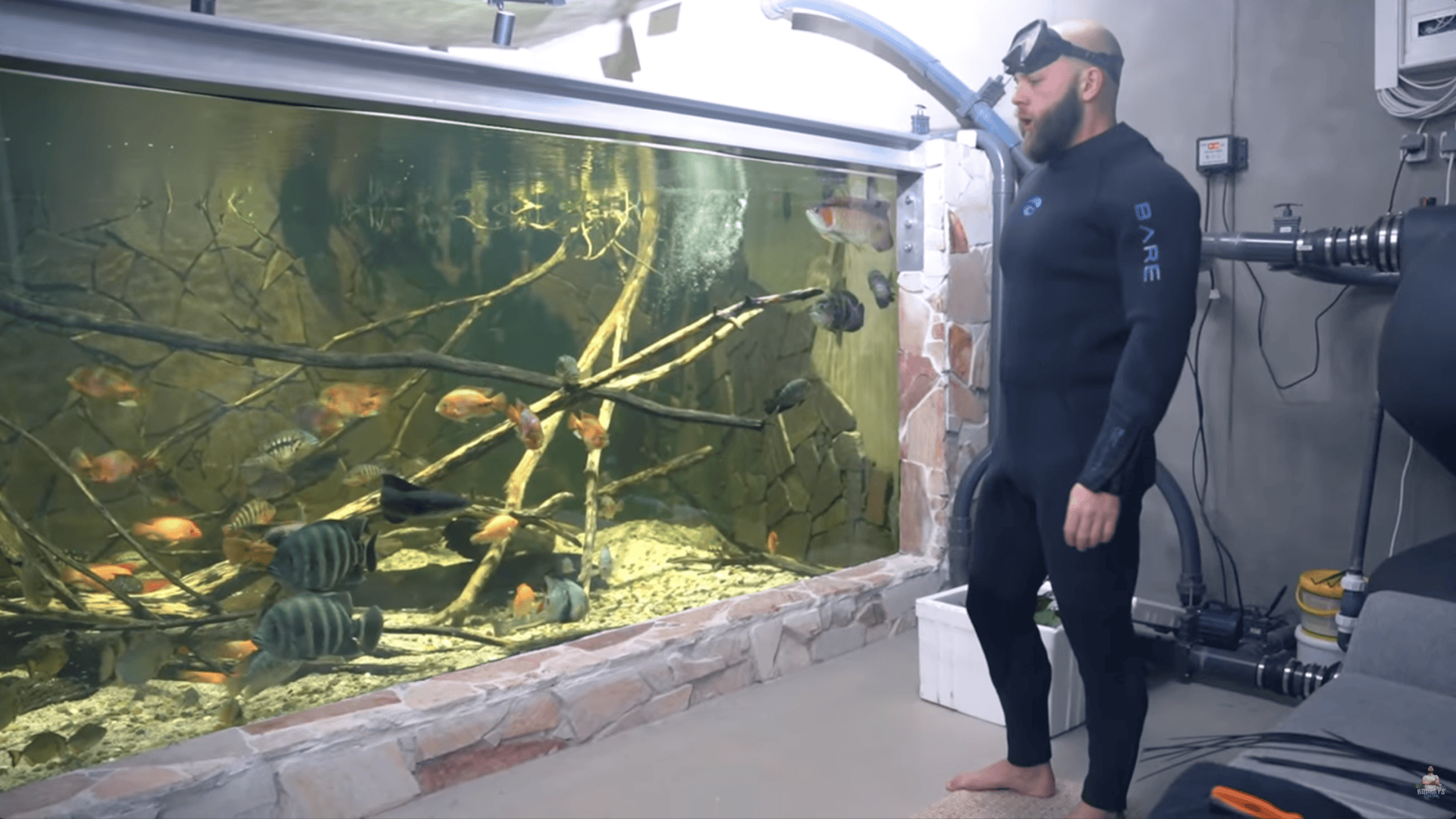 Rodneysfishtank wagt ein einzigartiges Abenteuer und steigt im Tauchanzug in sein gigantisches 21.000-Liter-Aquarium! Warum? Er bepflanzt sein Großaquarium mit emers wachsenden Zimmerpflanzen wie Spathiphyllum, Monstera, Philodendron und Efeutute. Erfahre, wie er diese über der Wasseroberfläche an Baumstämmen fixiert und welche Pflanzen sich eignen. Trotz der Störung für seine Aquarienfische wie Oscars, Dovi-Cichliden und Arowana, zeigt er, wie man solche Projekte fischschonend umsetzt. Ein Muss für Aquascaper und alle, die ihr Aquarium mit Emerspflanzen aufwerten wollen. Lerne wichtige Tipps zum Fischwohl, zur richtigen Pflanzenauswahl und zur Befestigung im Becken. Dieses Video bietet dir faszinierende Einblicke in ein Großaquarien-Projekt und die Welt der Aquaristik. Tauche ein in Rodneys Welt und hole dir Inspiration für dein Heimaquarium!