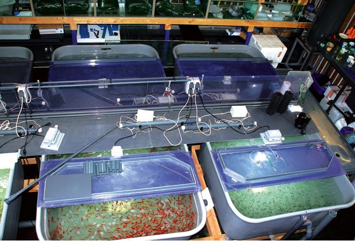 Momentan befinden sich insgesamt ca. 12000 Zuchtfische in den Becken. Hinzu kommen noch viele Wirbellose, von denen bereits so beliebte Arten wie Caridina palmata oder Neocaridina heteropoda gezüchtet werden. Ziel ist der weitere Ausbau der Zuchtanlage um weitere Behälter, die dann insgesamt 40000 Zuchtfische beherbergen sollen.