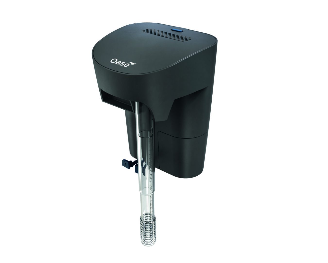 Oft ist der Innenfilter ein geeignetes Einstiegsmodell für kleinere bis mittelgroße Becken. Aufgrund seiner kleineren biologischen Haftfläche besitzt er eine geringere Filterkapazität als die meisten Außenfilter. Angebracht im Inneren des Tanks nimmt er zwar Platz weg, ist dafür aber sicher, da kein Wasser zur Filtration nach außen geführt wird. Um die Optik nicht zu stören, kann man den Korpus des Filters hinter Pflanzen verstecken. Im Vergleich zum Außenfilter muss der Innenfilter häufiger gereinigt werden, was sich jedoch recht schnell und unkompliziert erledigen lässt. Oase bietet beispielsweise mit dem BioPlus Thermo ein entsprechendes Modell.