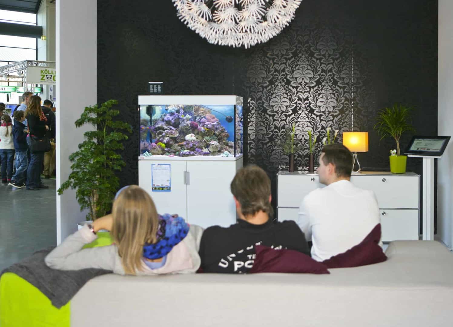 Bei der Sonderschau „Aquaristisches Wohnen“ beraten Experten, wie ein Aquarium ins eigene Zuhause oder Büro integriert werden kann, mit welchen Kosten Interessierte rechnen sollten und welcher zeitliche Aufwand dahintersteckt.