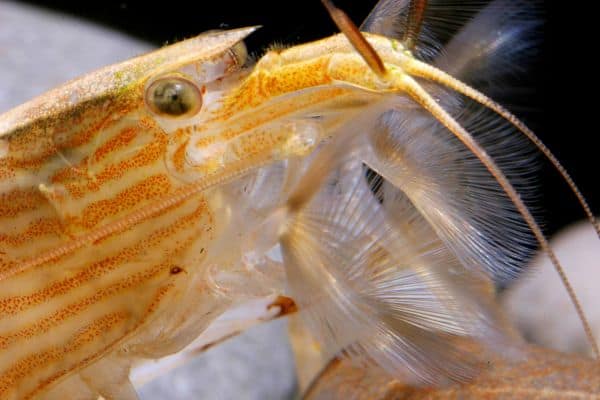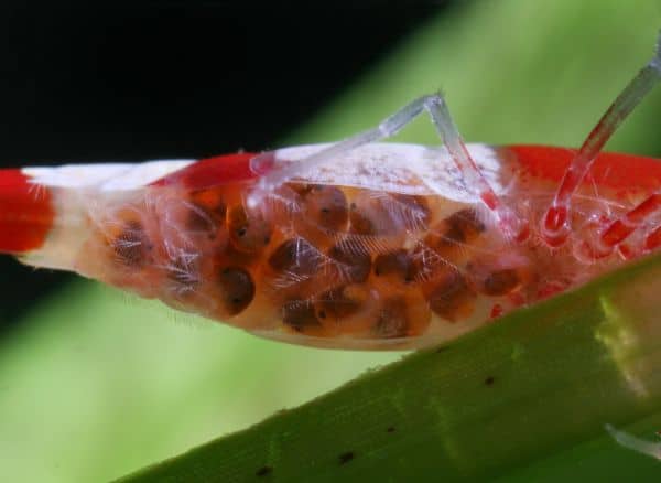 Garnelen sind sicherlich nicht die größten Wasserbewohner, aber gerade das bringt den Beobachter dazu, genauer hinzusehen. Die wirbellosen Krebstiere zeigen nämlich durchaus ein charakteristisches Sozialverhalten. So haben sie spezialisierte Formen der Nahrungsaufnahme, und auch ihr Wachstum lässt sich gut beobachten, da sie sich von Zeit zu Zeit häuten, indem sie aus ihrer Außenhülle schlüpfen. Ab einem gewissen Alter kann die Häutung auch ein Zeichen für die Geschlechtsreife sein. Dann versprüht das Weibchen seinen Charme in Form von Pheromonen im Wasser, was wiederum die Männchen aufweckt und sie zum markanten Paarungsschwimmen animiert. Die Geschlechtsteile befinden sich bei Garnelen im Nackenbereich und sind bei manchen Arten durch den Panzer hindurch erkennbar. Wer genau hinschaut, kann bei trächtigen durchsichtigen Weibchen sogar schon die schwarzen Augen der Larven durch die Eierschale hindurch sehen.