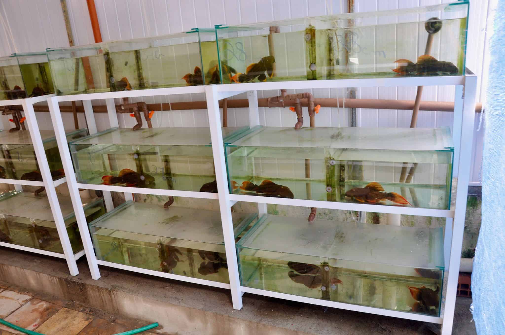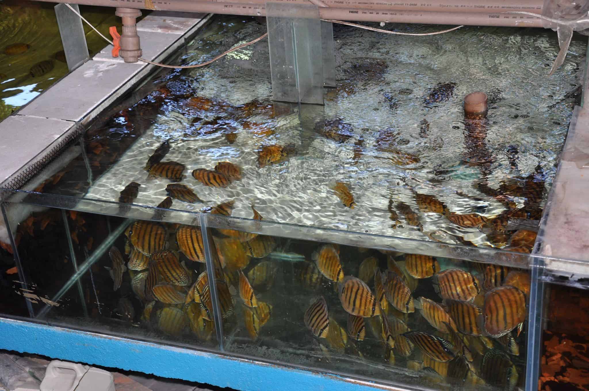 der brasilianischen Küste gefangen werden, mit Diskusfischen aus Amazonien, Panzerwelsen, L-Welsen und einigen Arten seltener Salmler und seltener Welse in einem Nachzuchtprojekt.