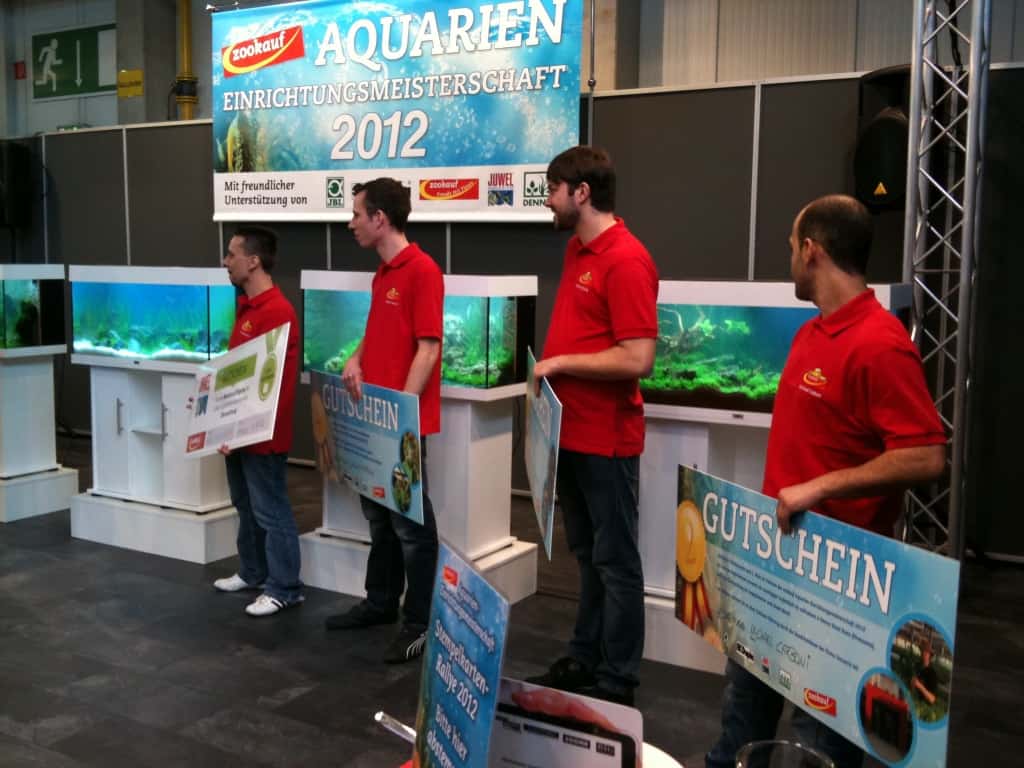 Kassel / Hückeswagen – „Das war ein spannendes Finale mit tollen Beiträgen und eine Aktion, mit der wir die Aquaristik weiter nach vorne bringen“, resümierte Ralf Grützner, Leiter des zookauf-Sortimentsbereichs Aquaristik, Terraristik, Teich nach der Preisübergabe im Rahmen der zookauf Aquarien-Einrichtungsmeisterschaft 2012. Während der Garten- & Zooevent in Kassel richteten fünf Finalisten am 13. Oktober vier Stunden lang auf der zookauf-Fläche ihre Wettbewerbsbecken ein. Im Anschluss wählten die Messebesucher ihren persönlichen Einrichtungsmeister per Stimmkarte. Am 14. Oktober gab Ralf Grützner im Beisein der Sponsoren, Mitinitiatoren und vieler Aquaristikbegeisterter die Platzierungen bekannt.